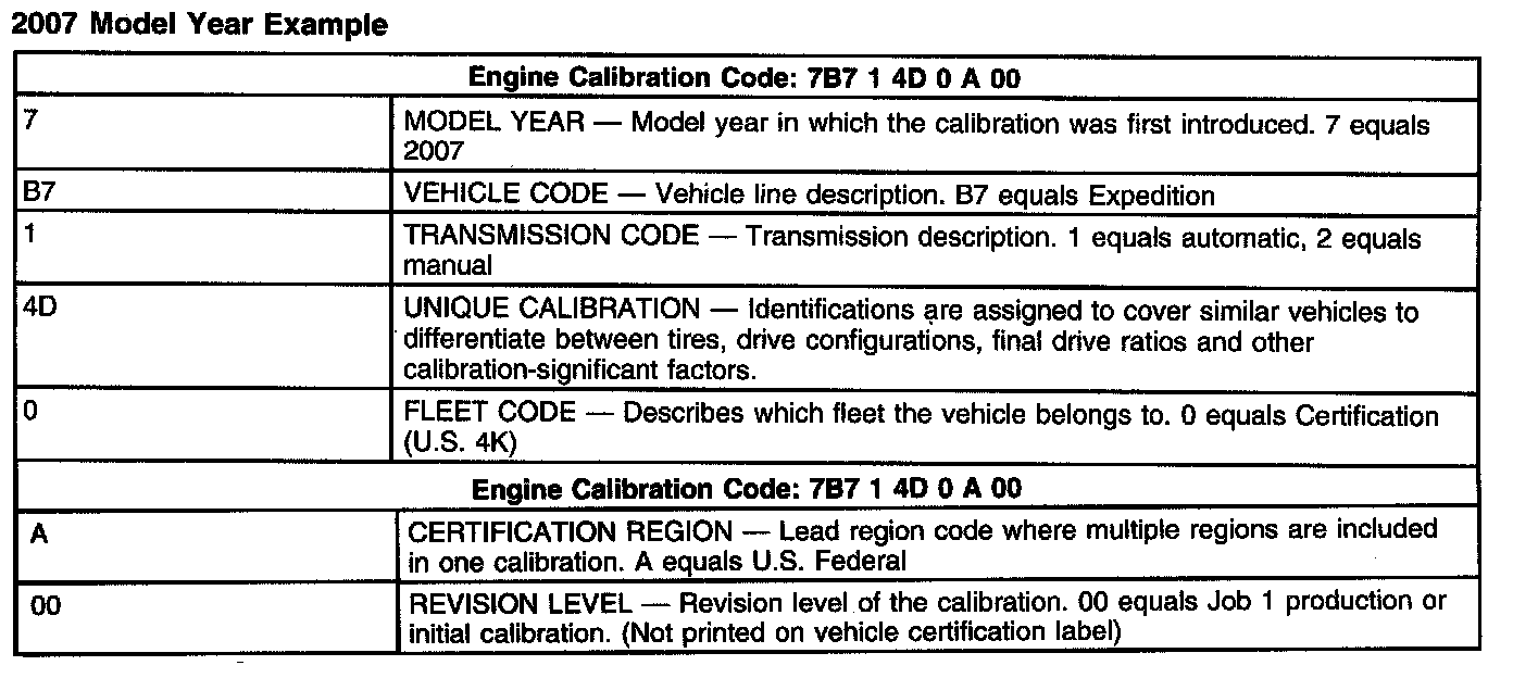 2007 Model Year Example: