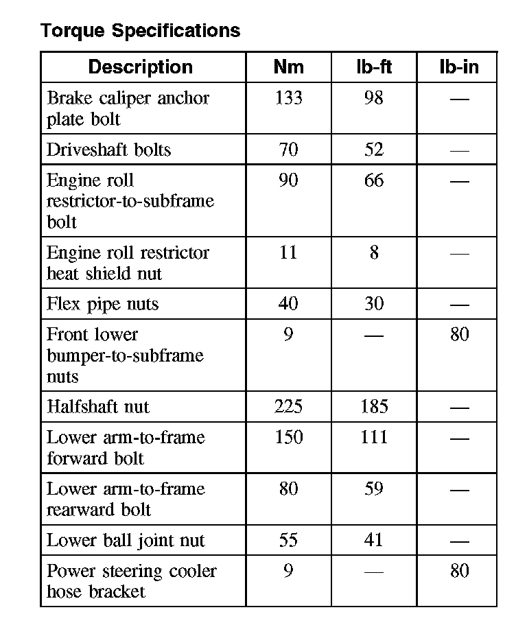 Torque Specifications