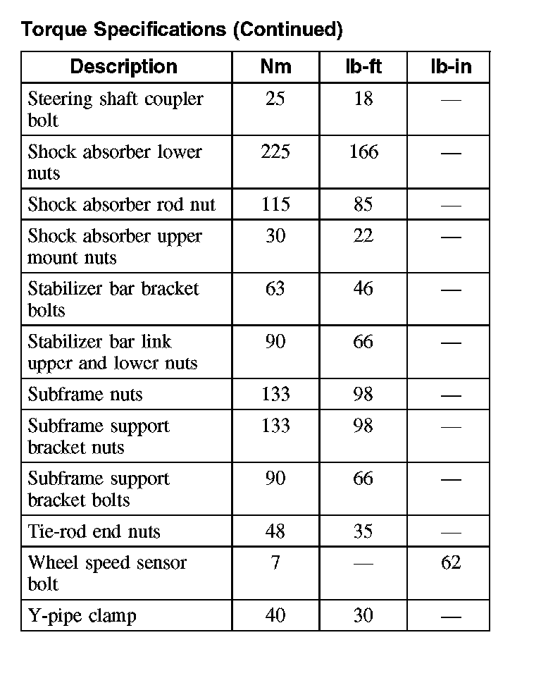 Torque Specifications (Part 2):