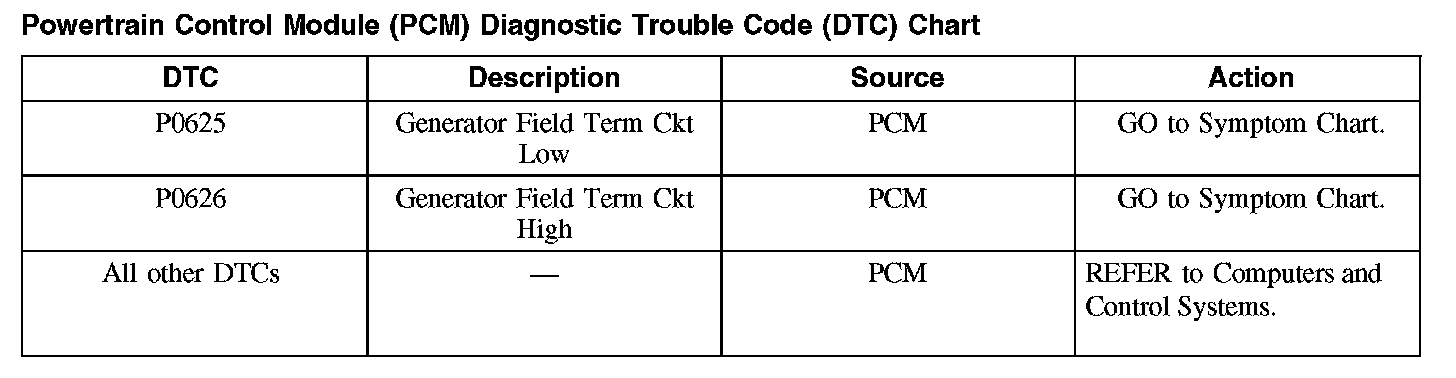 Powertrain Control Module (PCM) Diagnostic Trouble Code (DTC) Chart