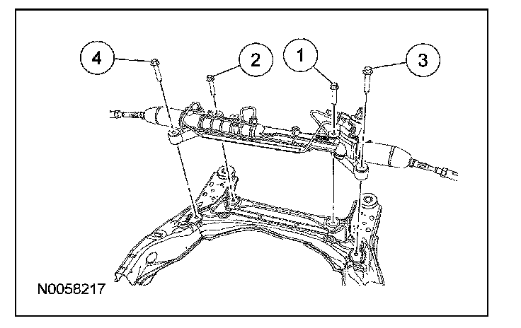 - To install, tighten the steering gear bolts in the sequence shown.