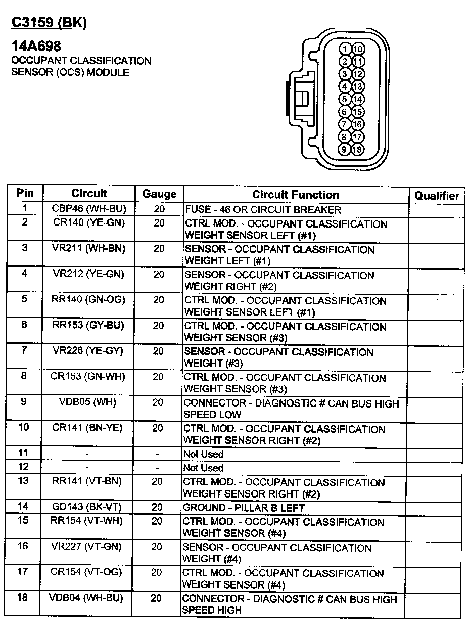 Seat Occupant Classification Module - Air Bag