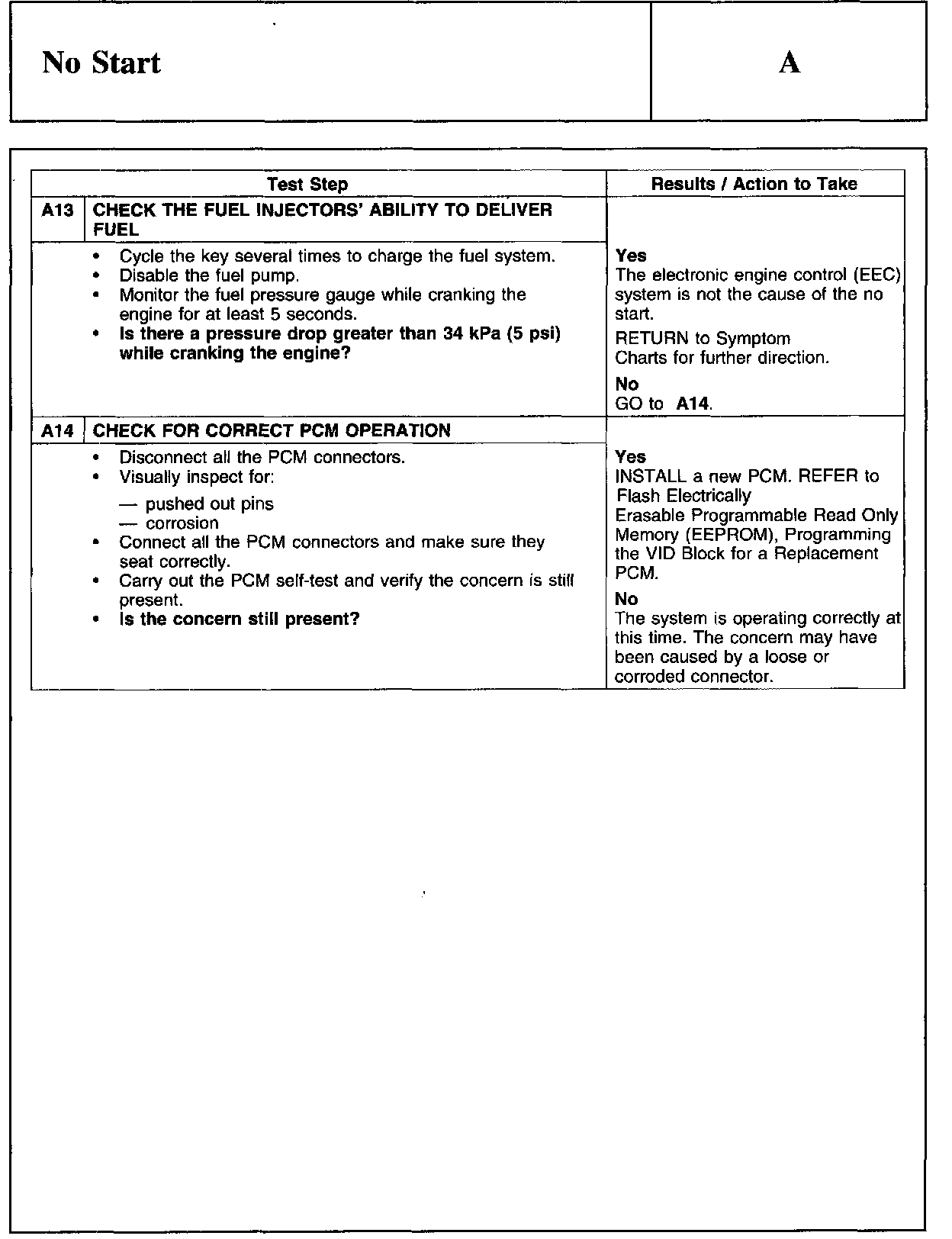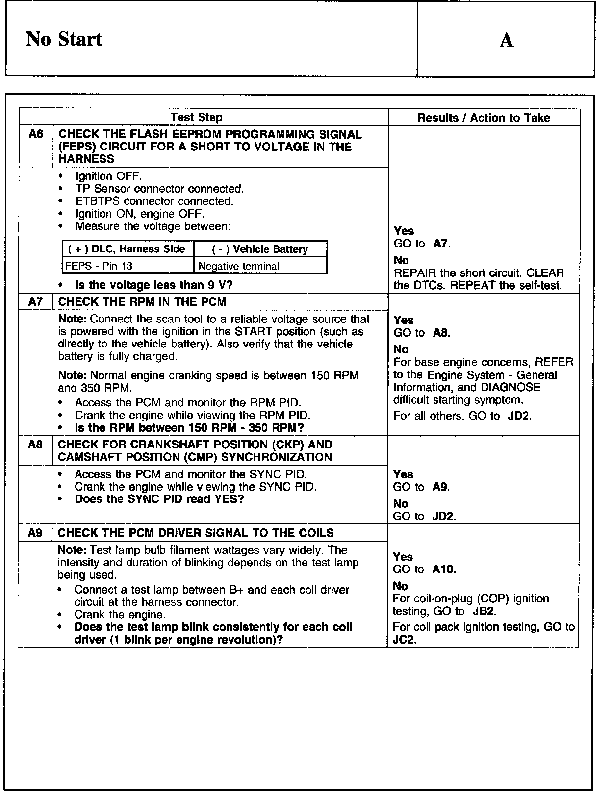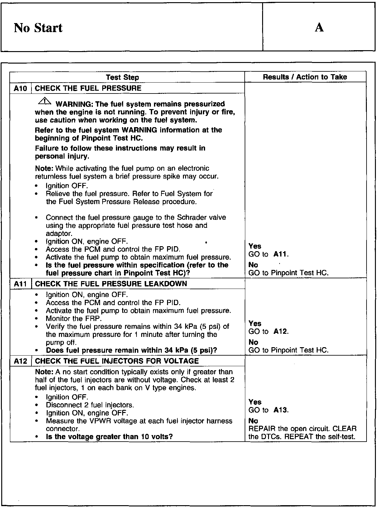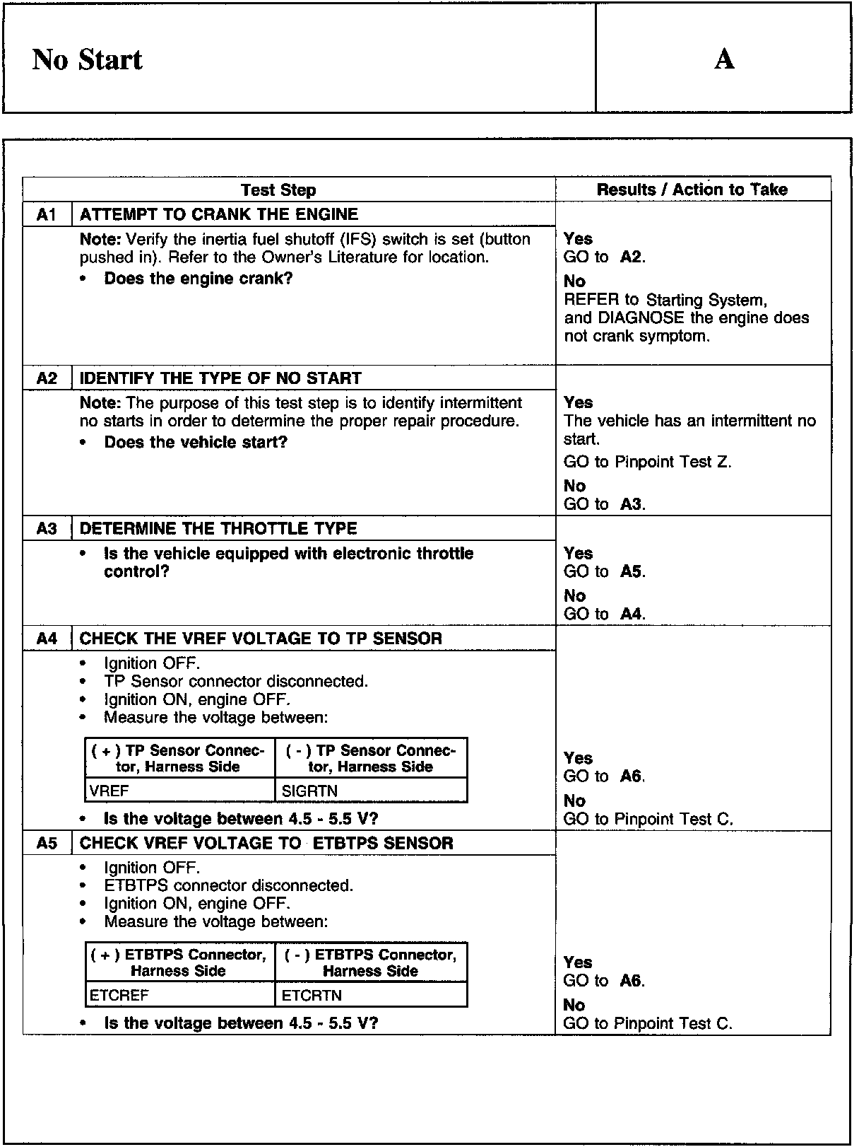 PINPOINT TEST A: NO START