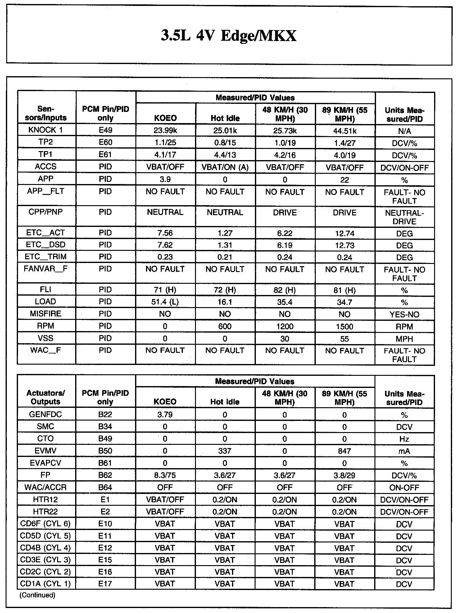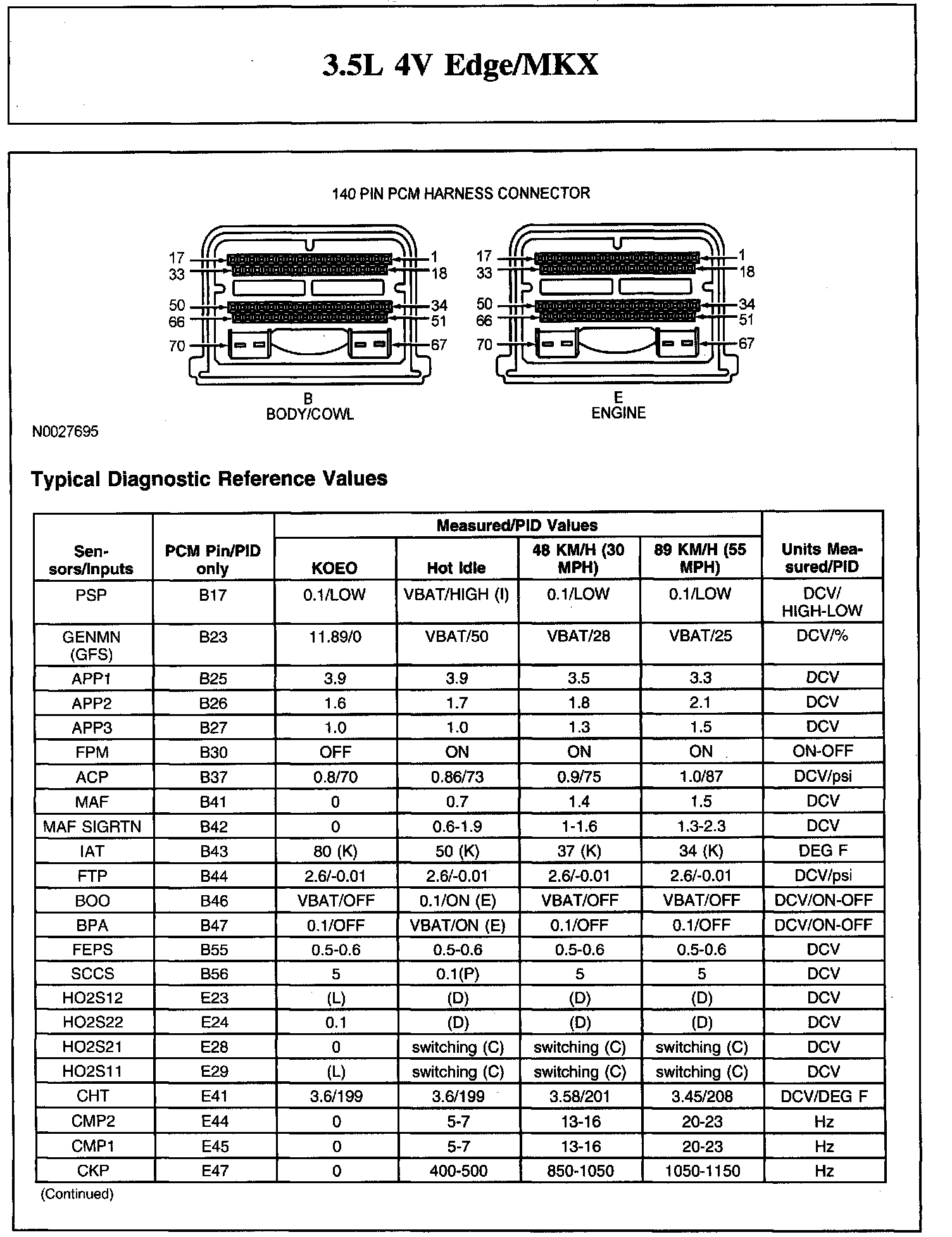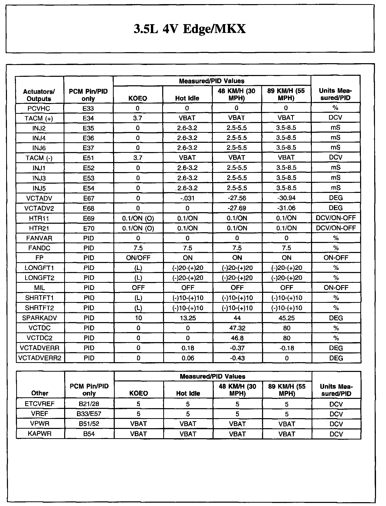 Home >> Ford >> 2007 >> Edge FWD V6-3.5L >> Repair and Diagnosis >> Powertrain Management >> Computers and Control Systems >> Testing and Inspection >> Scan Tool Testing and Procedures >> Typical Diagnostic Reference Values
