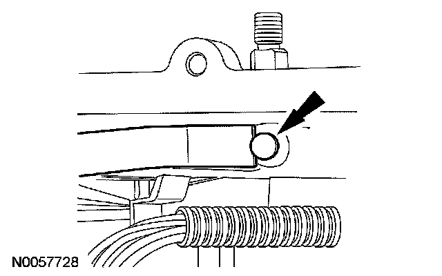 16. Position the transmission fluid cooler tube in place and install the bolt.