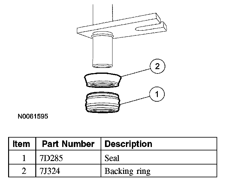 15. Inspect the transmission fluid cooler tube backing ring and seal for damage and install a new backing ring or seal if necessary. Lubricate the transmission fluid cooler tube seal with clean automatic transmission fluid and install the backing ring and seal on the transmission fluid cooler tube.