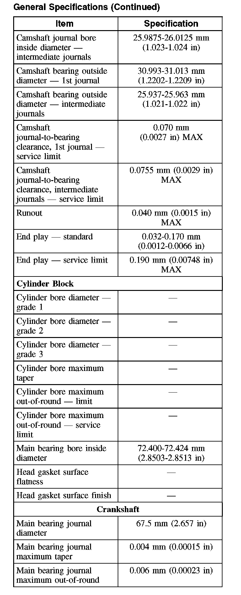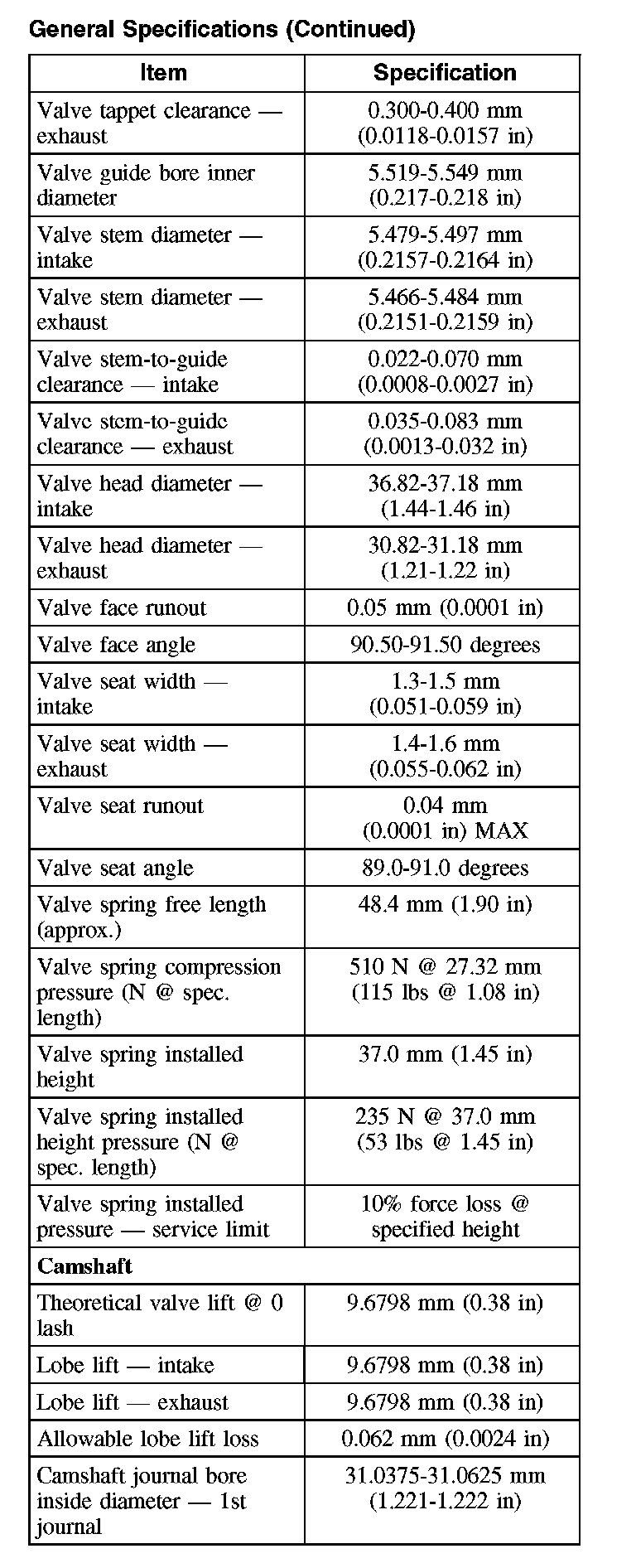 General Specifications