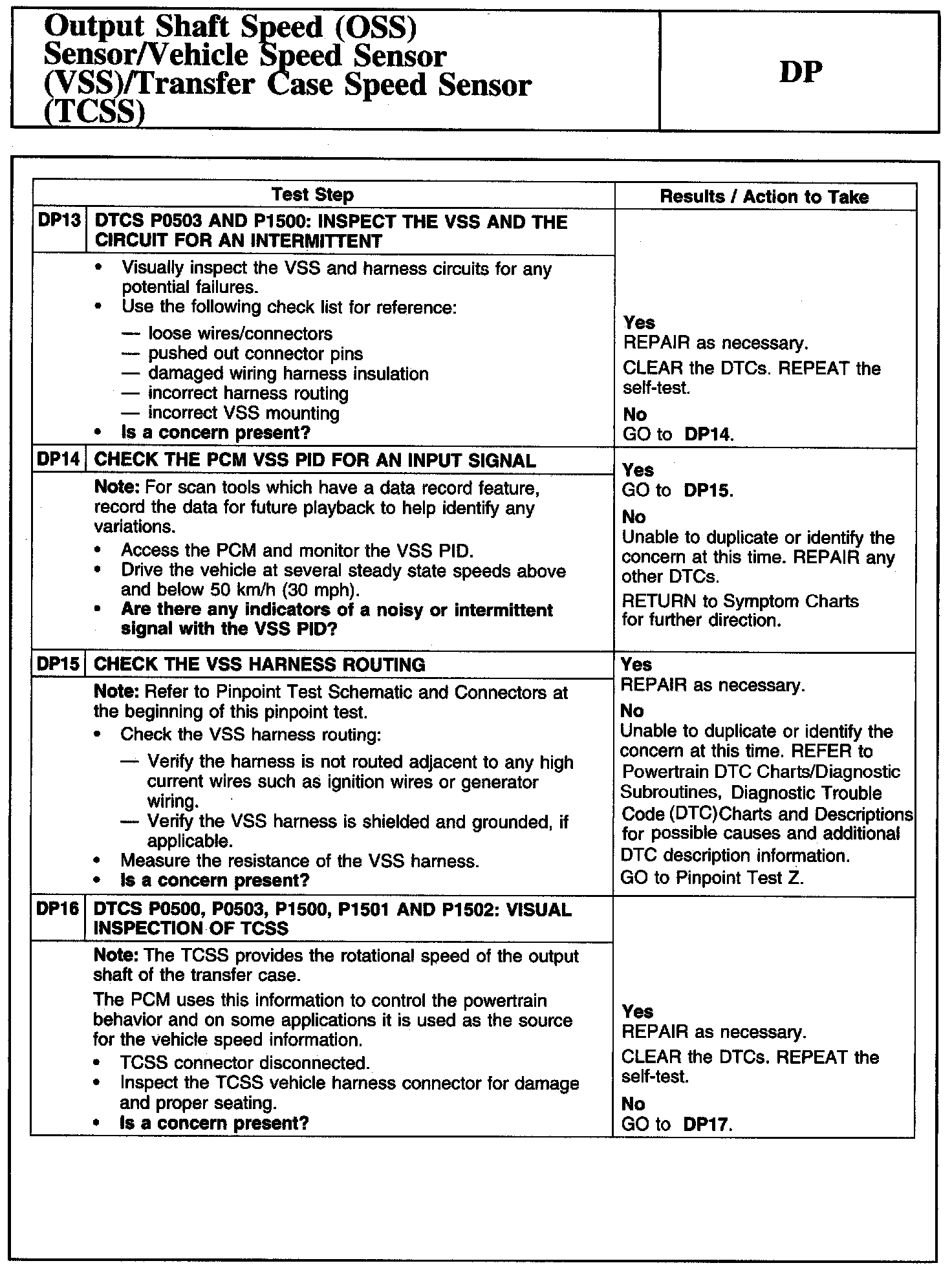 Tests DP: Output Shaft Speed (OSS) Sensor/Vehicle Speed Sensor (VSS)/Transfer Case Speed Sensor (TCSS)
