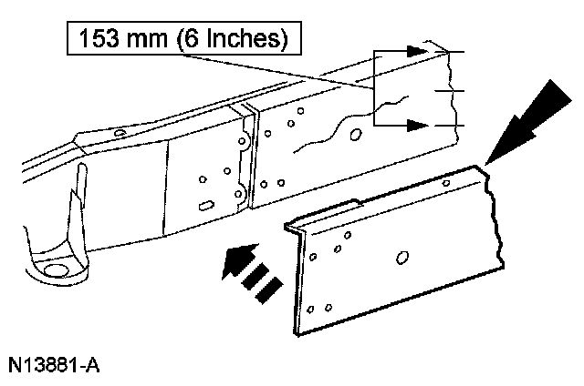 9. Clamp the reinforcements securely to the frame prior to welding. Continuously weld the reinforcement over the welded V-slot repair.