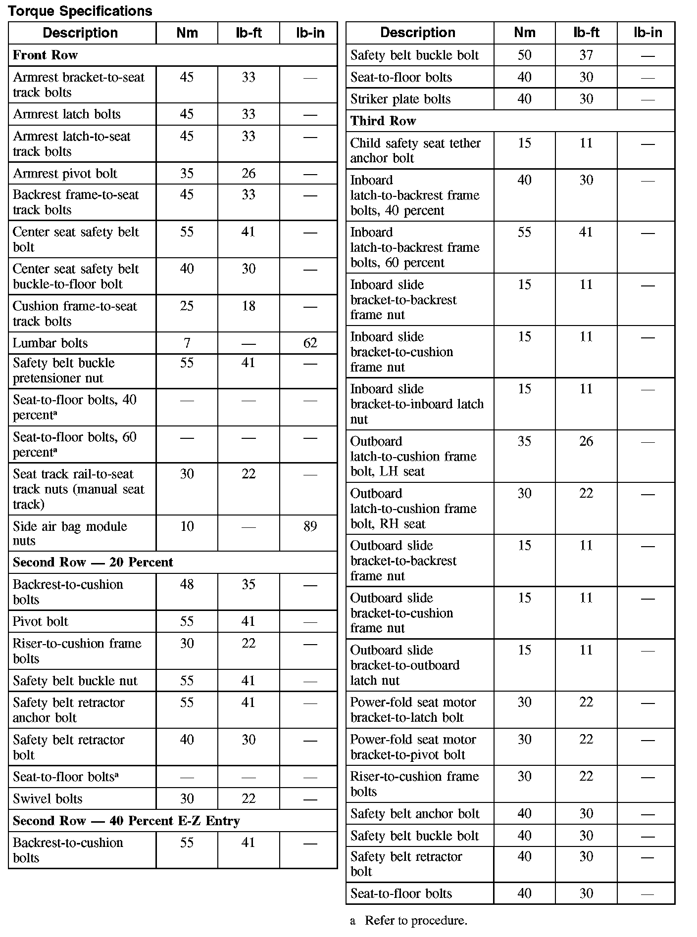 Torque Specifications: