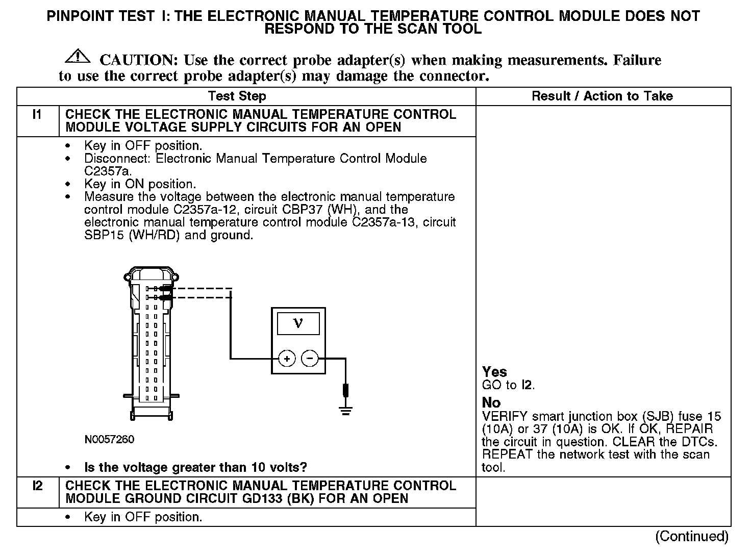 PINPOINT TEST I: THE ELECTRONIC MANUAL TEMPERATURE CONTROL MODULE DOES NOT RESPOND TO THE SCAN TOOLI1-I2: