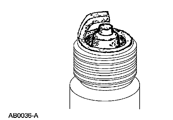 ^ Check for wet, black deposits on the insulator shell bore electrodes, caused by excessive oil entering the combustion chamber through worn rings and pistons, excessive valve-to-guide clearance or worn or loose bearings.