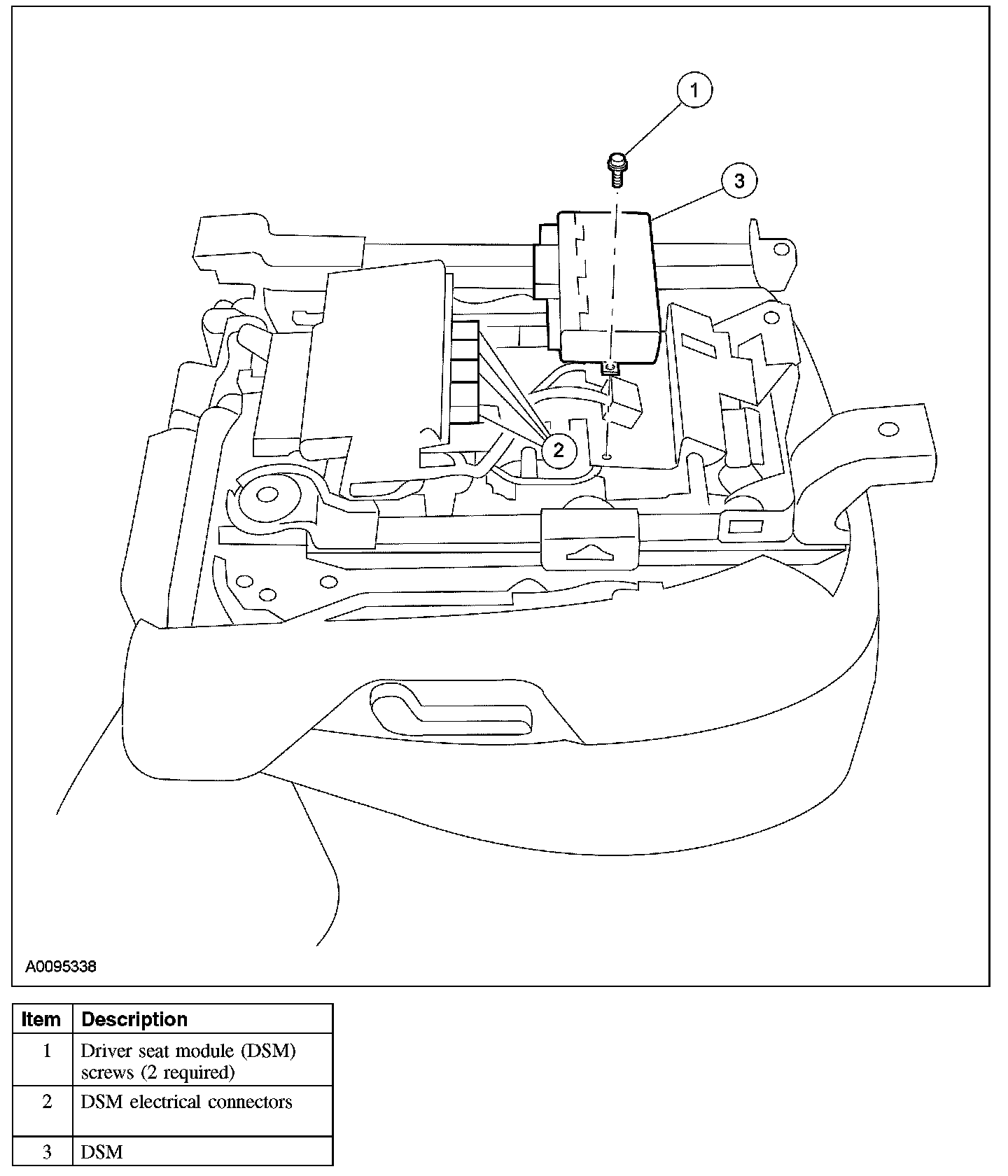 Home >> Ford >> 2007 >> Explorer 2WD V8-4.6L VIN 8 >> Repair and Diagnosis >> Powertrain Management >> Computers and Control Systems >> Relays and Modules - Computers and Control Systems >> Body Control Module >> Service and Repair >> Driver Seat Module (DSM)