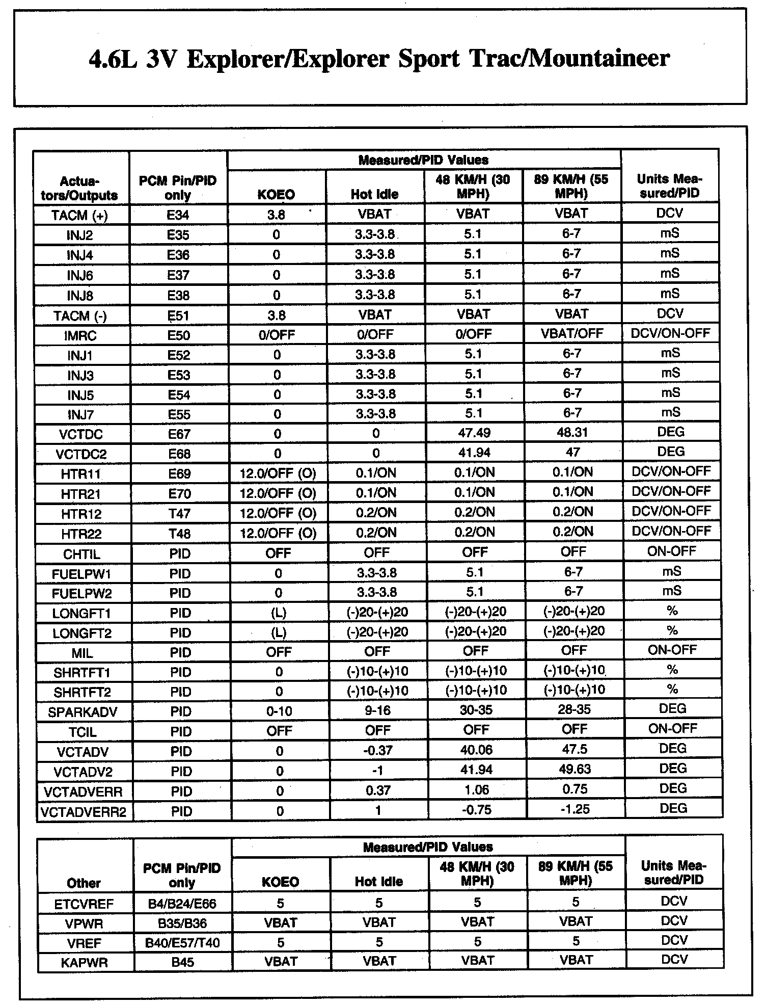 Home >> Ford >> 2007 >> Explorer 2WD V8-4.6L VIN 8 >> Repair and Diagnosis >> Powertrain Management >> Computers and Control Systems >> Testing and Inspection >> Scan Tool Testing and Procedures >> Typical Diagnostic Reference Values