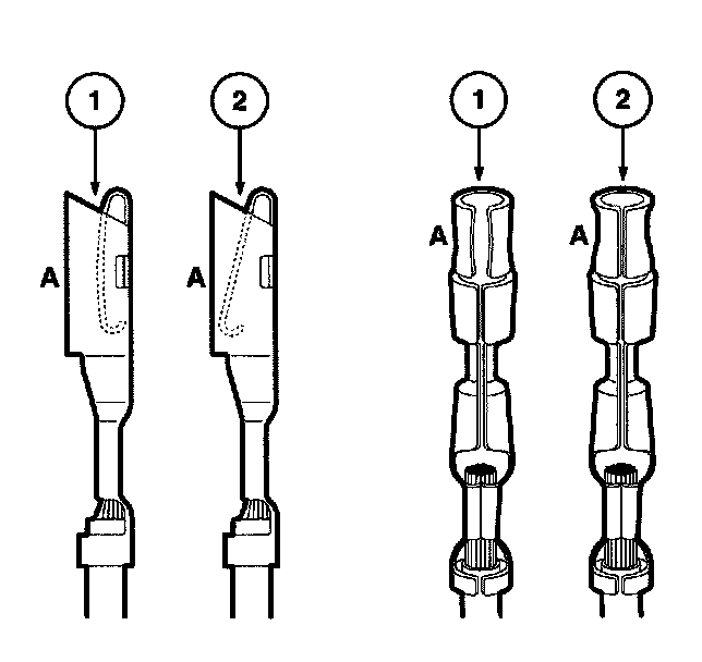 Any probe entering the terminal may enlarge the contact spring opening creating an intermittent signal. Insert the correct mating terminal (Location A) from the service kit and feel for a loose fit.