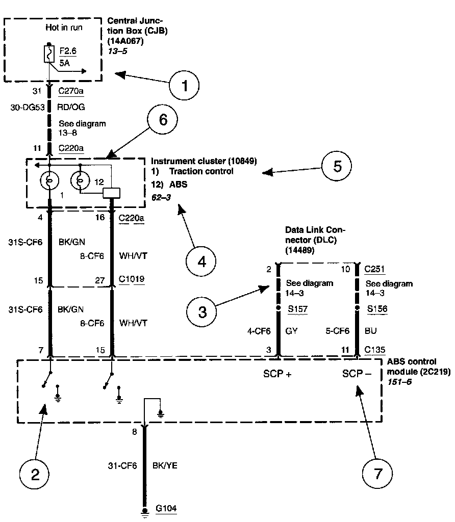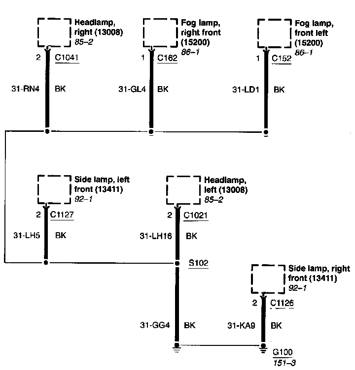 Each set normally starts with the component that powers the circuit, such as a fuse or the ignition switch. Current flow is shown from the power source at the top of the diagram to ground at the bottom of the diagram. In order to concentrate on the essential parts, power supply and ground connections are sometimes simplified by a dashed line in the diagrams. A full representation of the power supply of a fuse or the power distribution from a fuse to various components is given in Power and Ground Distribution Diagrams. Full representation of the ground connections are shown in Power and Distribution Diagrams.