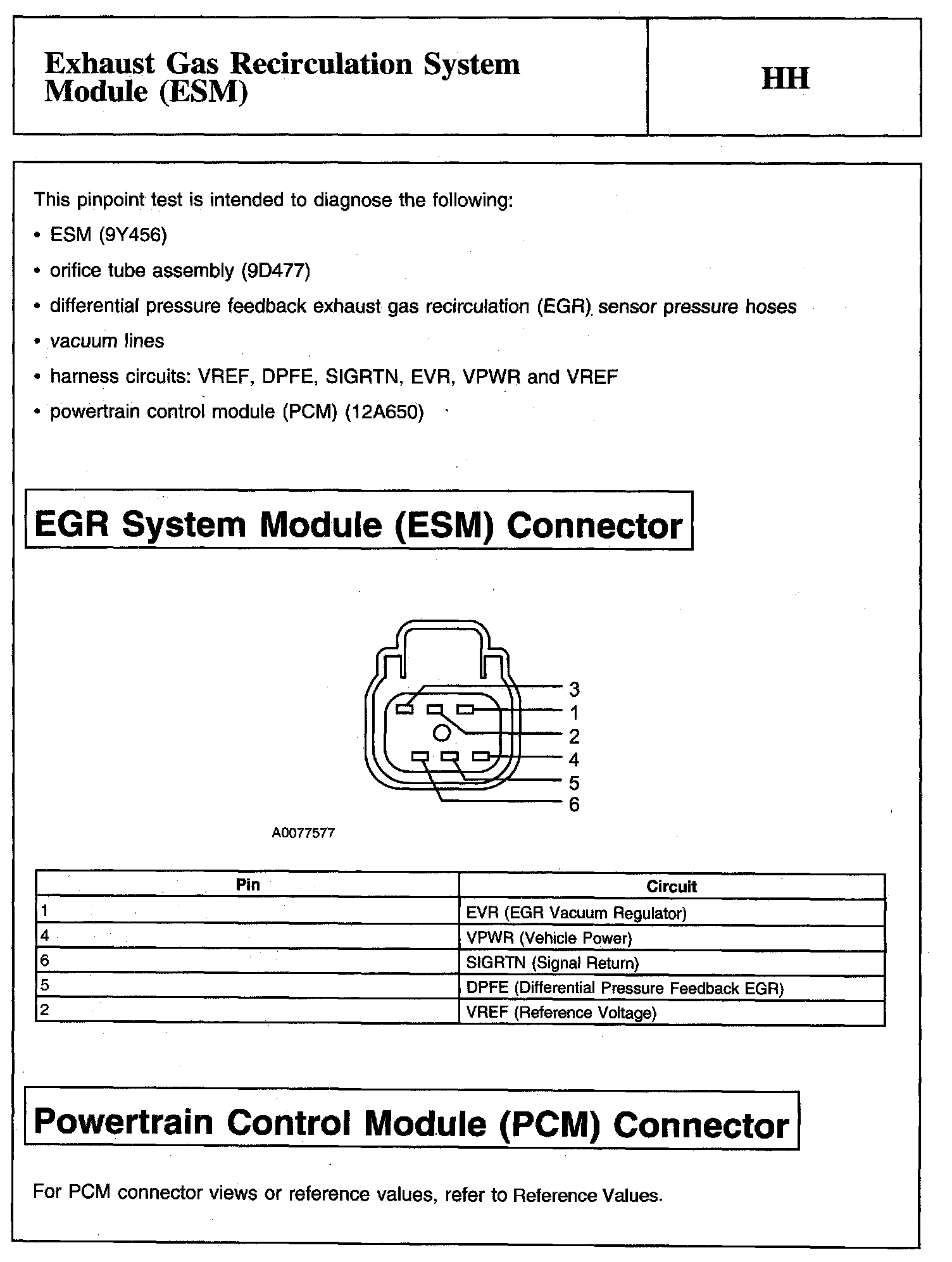 PINPOINT TEST HH: EXHAUST GAS RECIRCULATION SYSTEM MODULE (ESM)