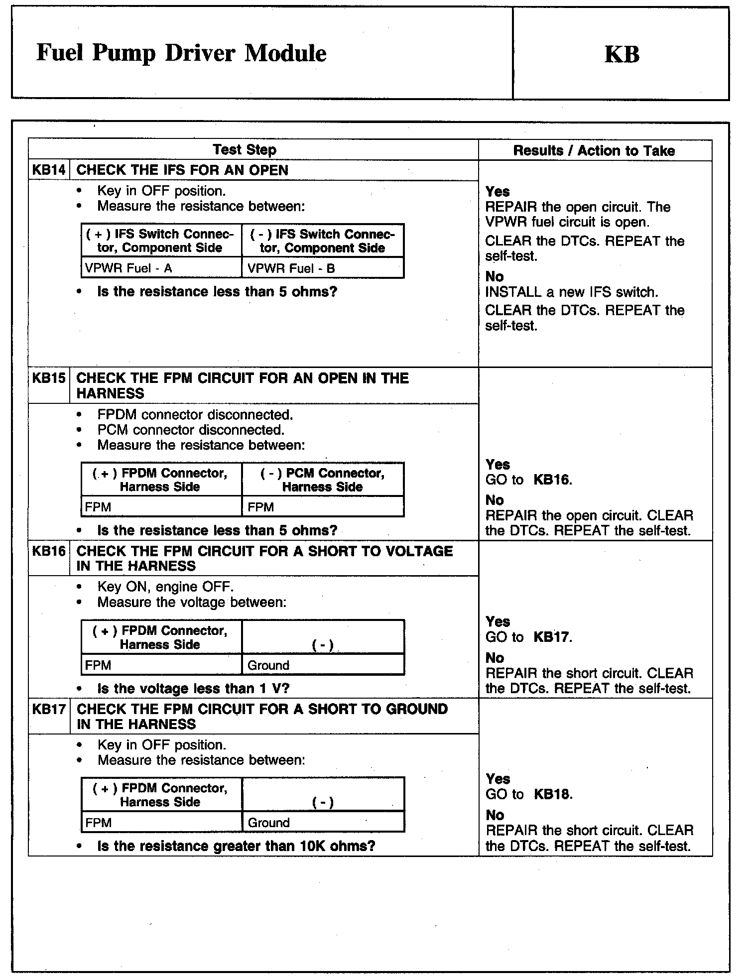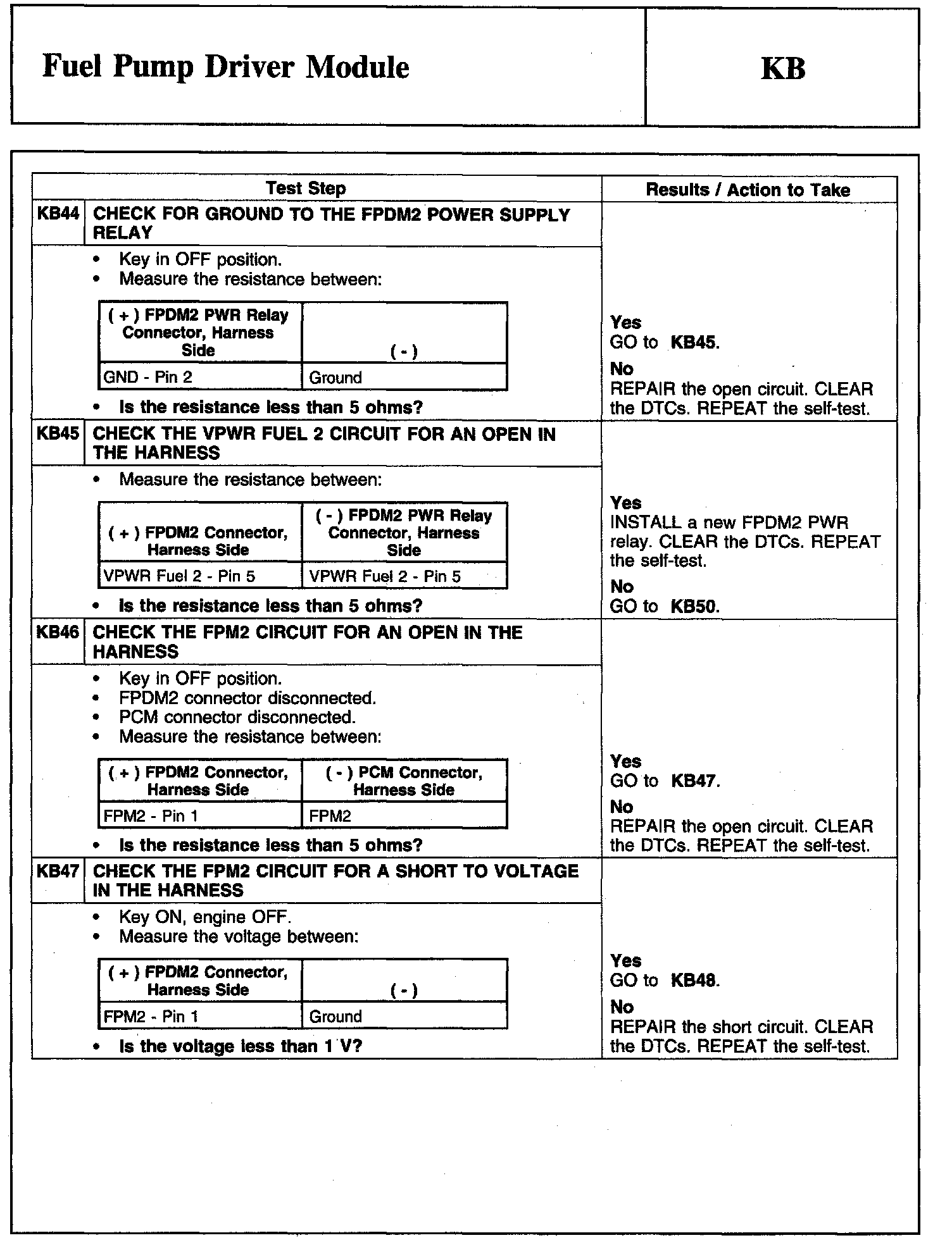Tests KB: Fuel Pump Driver Module