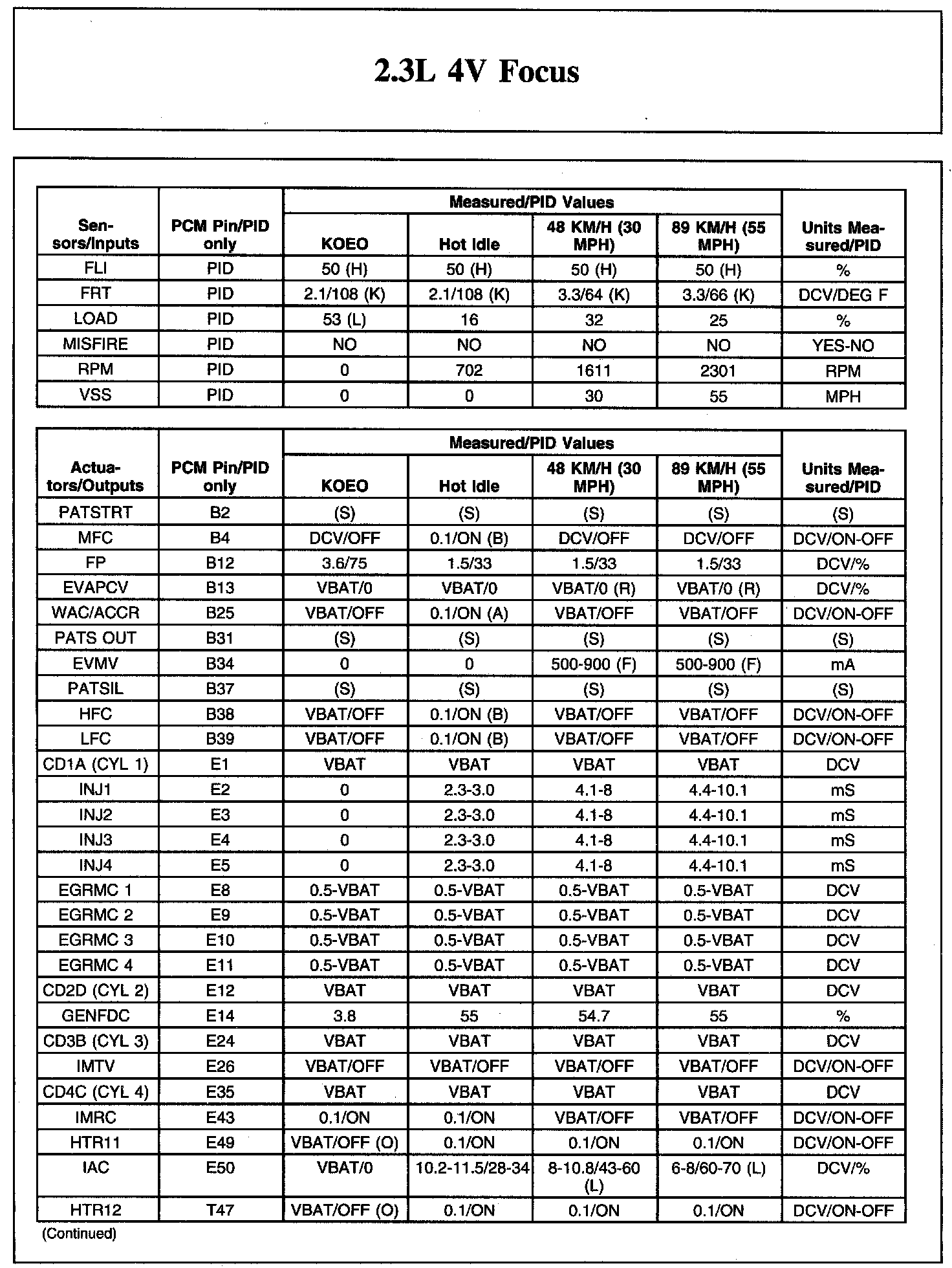 Home >> Ford >> 2007 >> Focus L4-2.3L VIN Z >> Repair and Diagnosis >> Powertrain Management >> Computers and Control Systems >> Testing and Inspection >> Scan Tool Testing and Procedures >> Typical Diagnostic Reference Values