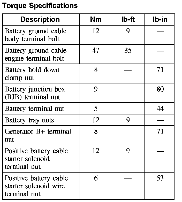 Torque Specifications: