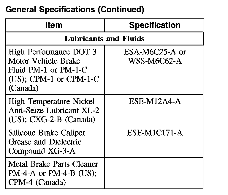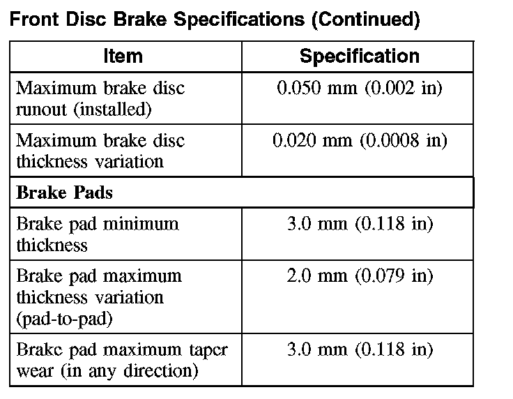Front Disc Brake Specifications: