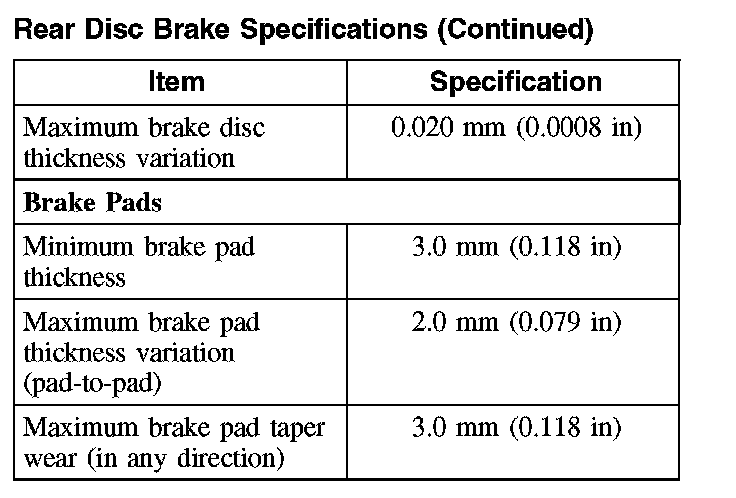 Rear Disc Brake Specifications: