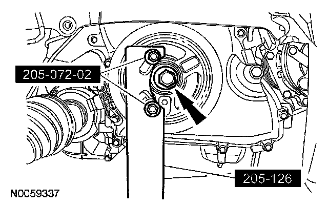 Install a new crankshaft pulley bolt. Using the special tools to hold the crankshaft pulley in place, tighten the crankshaft pulley bolt in 2 stages: