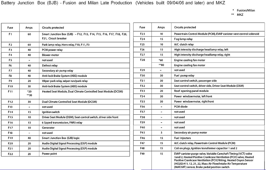 Late Production (Vehicles built 09/04/2006 and later)