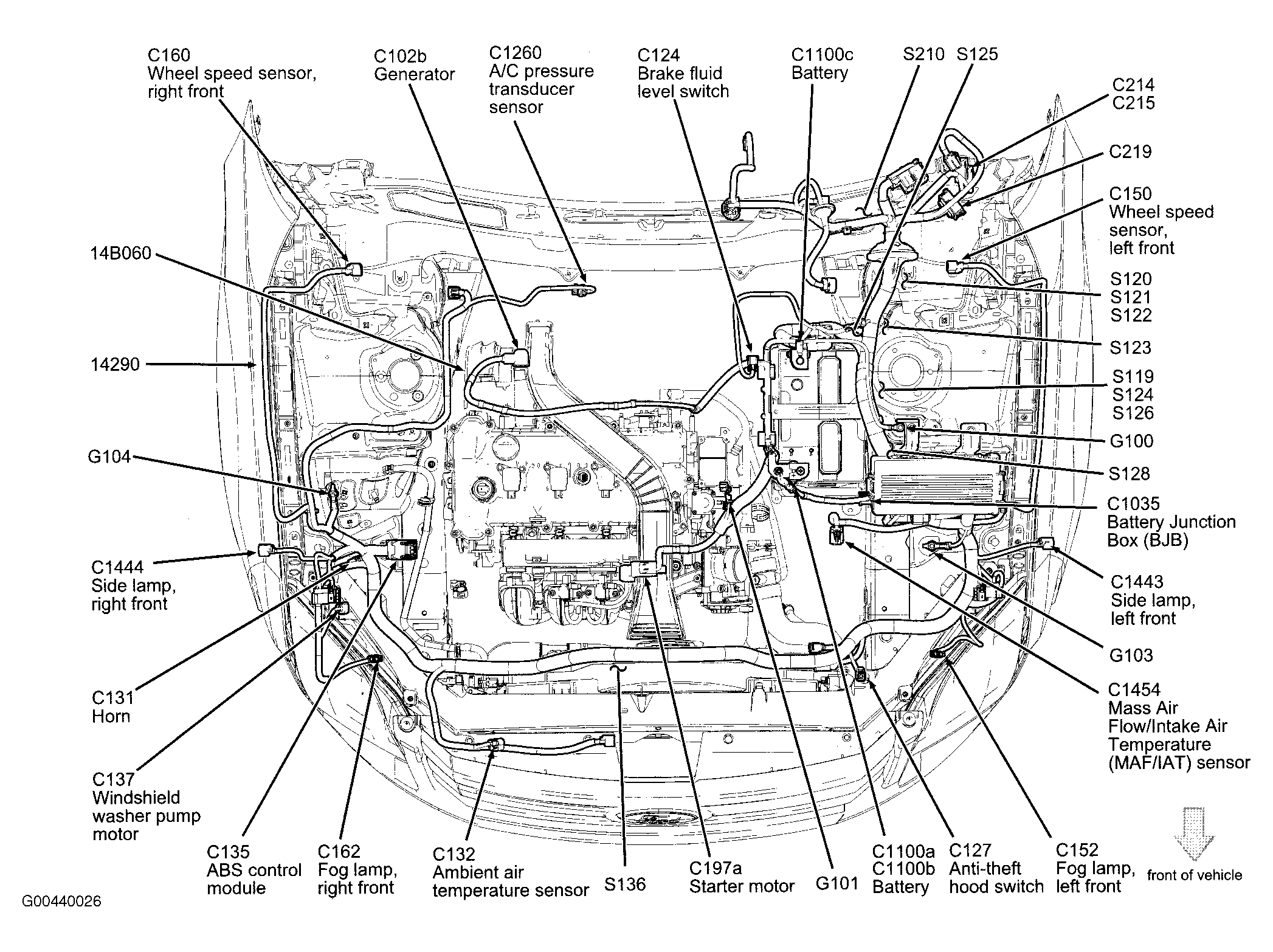 | ABS Control Module (3.5L) | Right front of engine compartment. See Figure. |