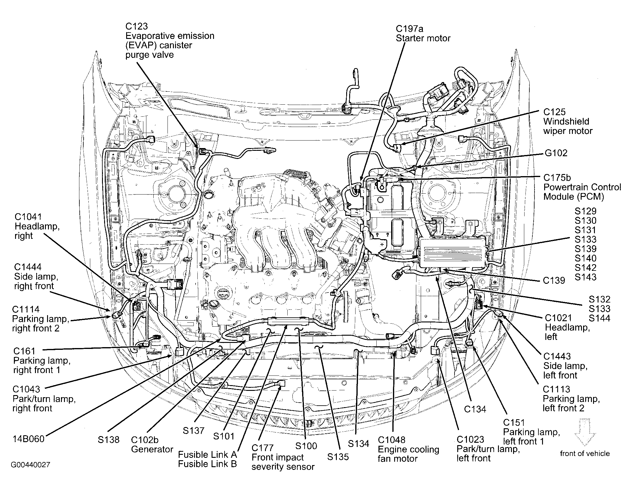 | Powertrain Control Module (PCM) (3.5L) | Left rear of engine compartment. See Figure. |