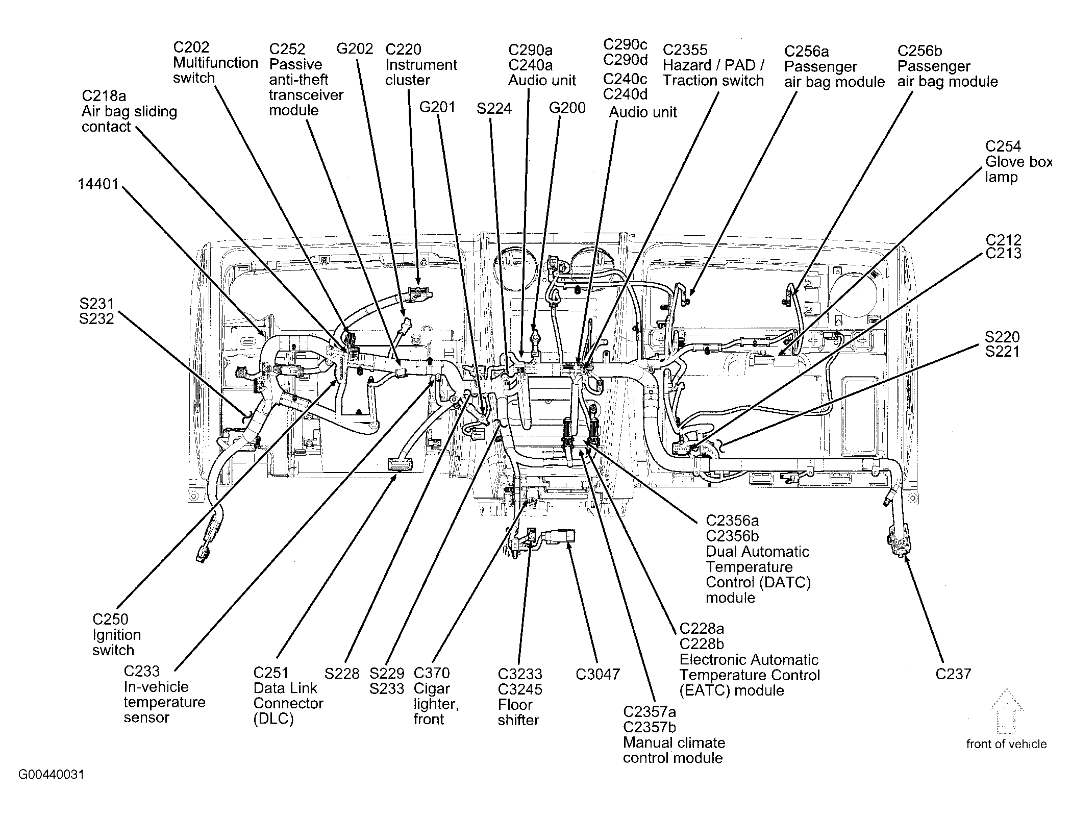 | Dual Automatic Temperature Control (DATC) Module | Center of dash. See Figure. |