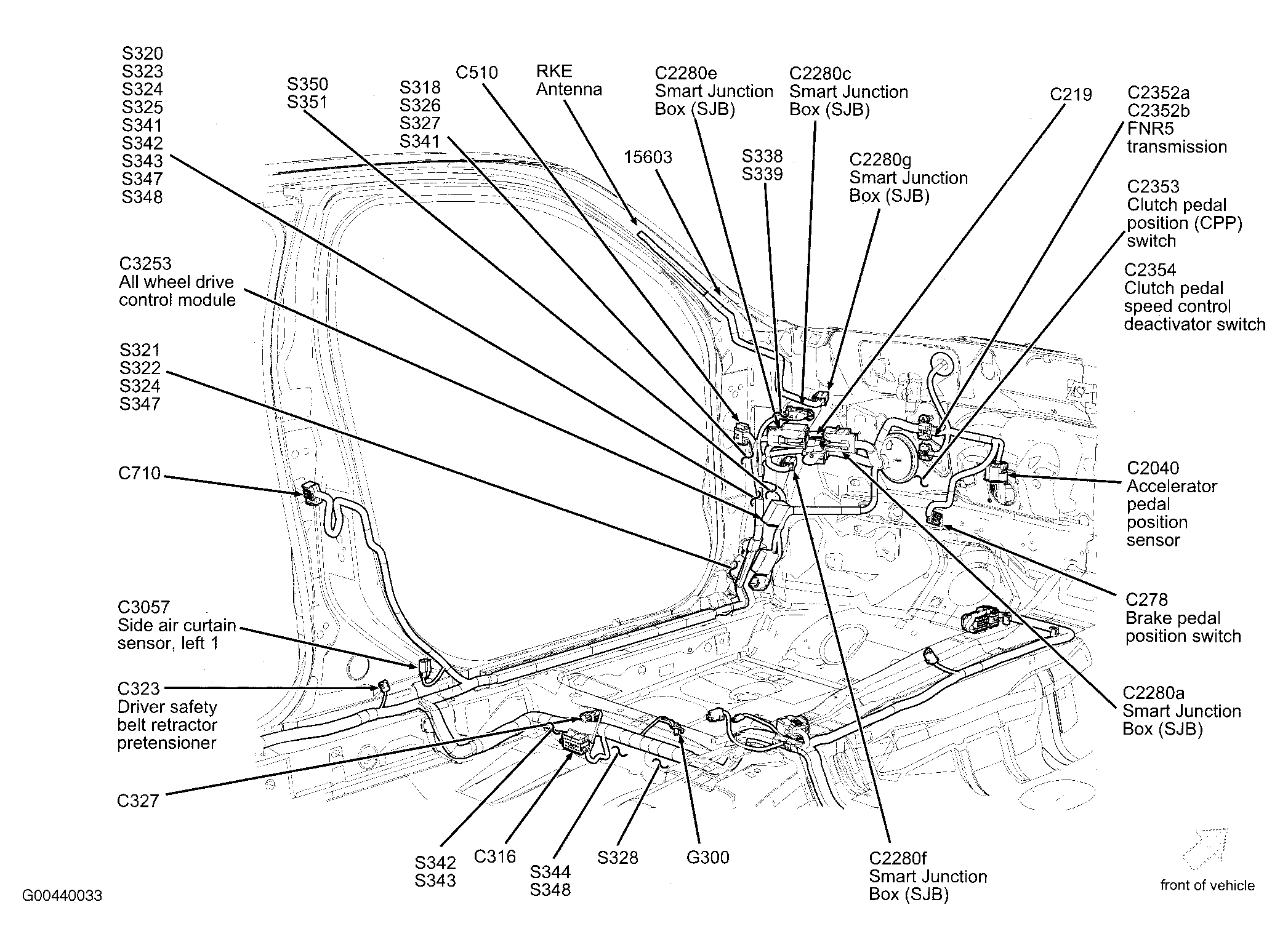 | Transmission Control Module (FNR5) | Under instrument panel, LH side. See Figure. |