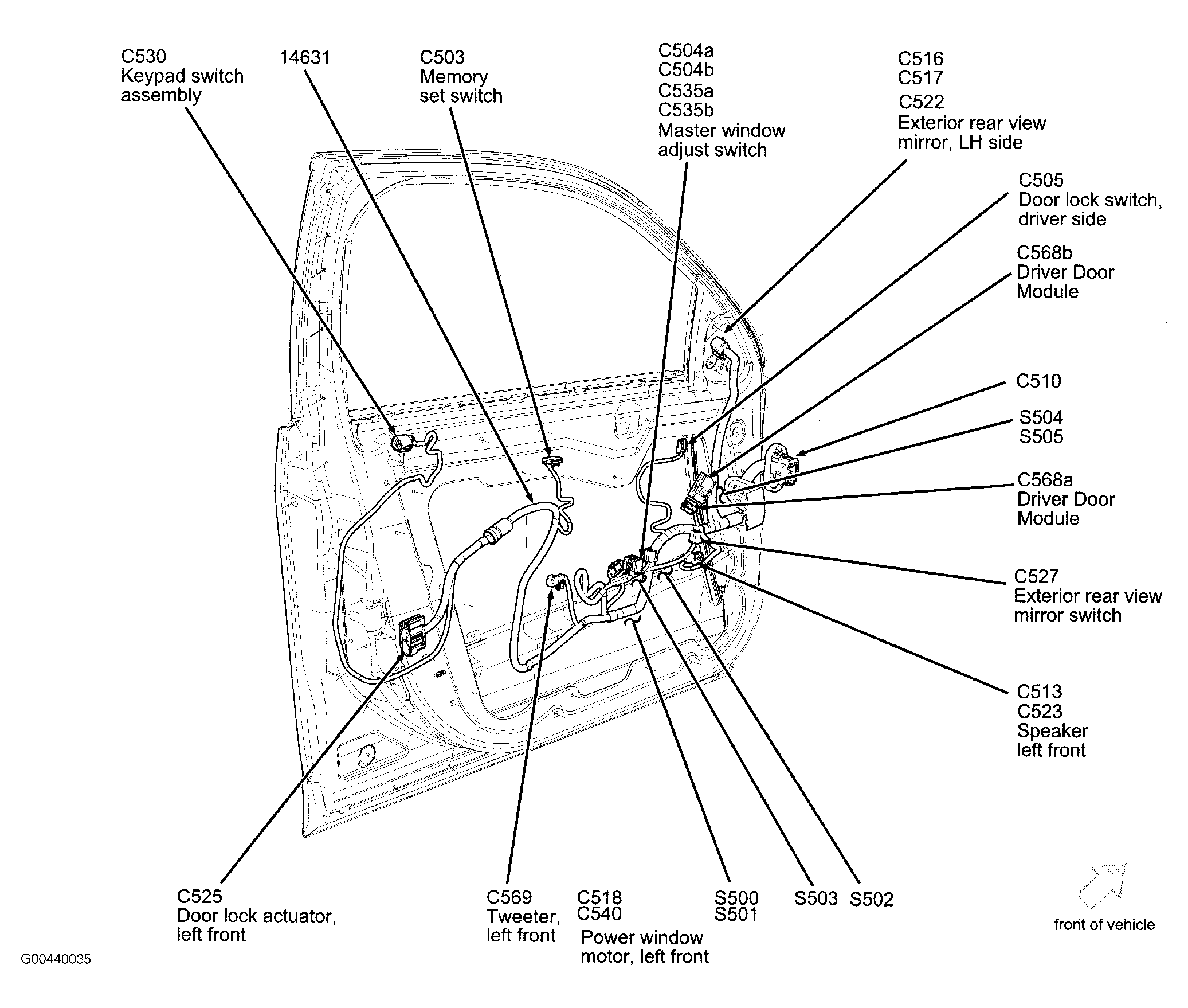 | Driver's Door Module | Front of driver's door. See Figure. |