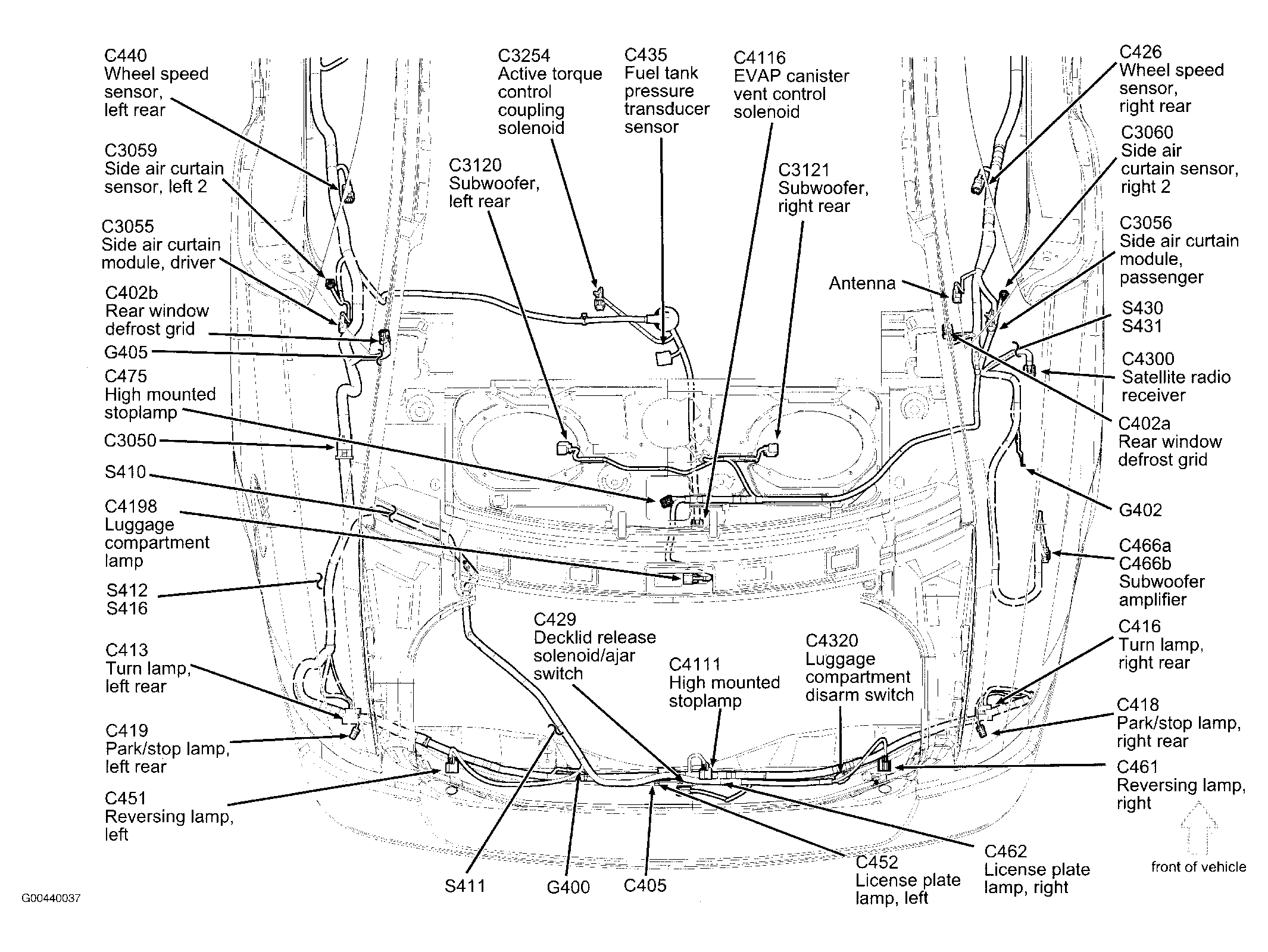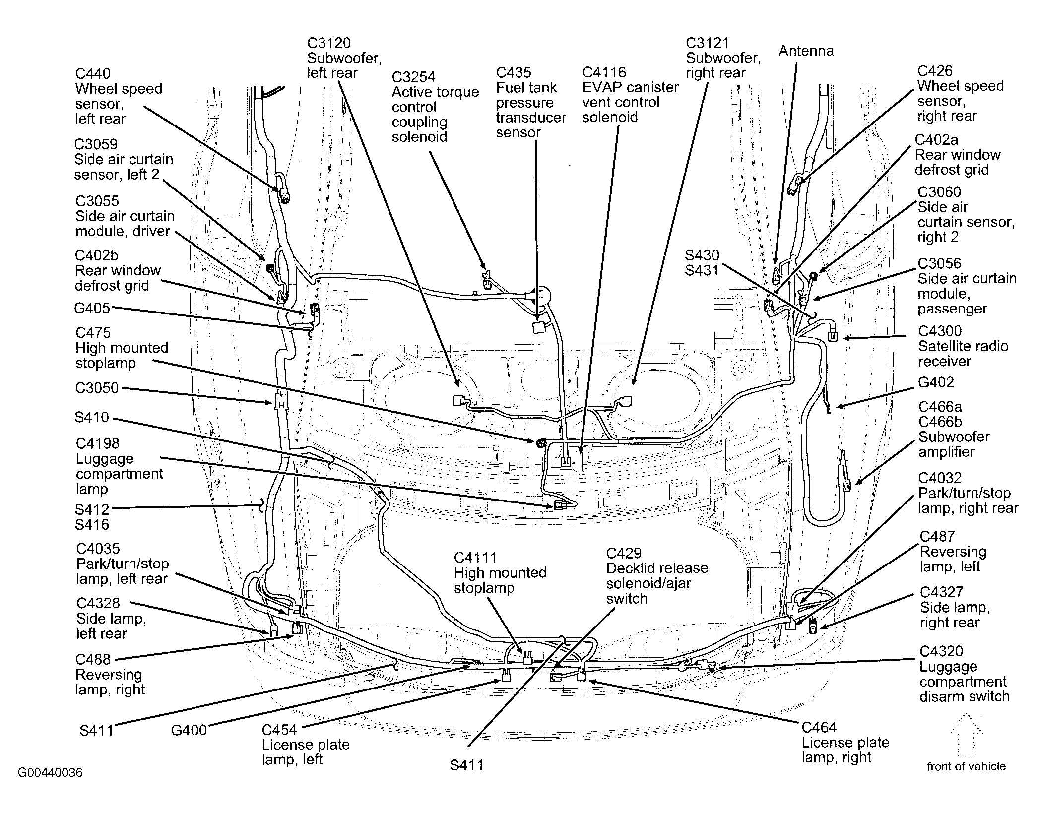 | Antenna Module (MKZ) | Right rear of trunk. See Figure. |