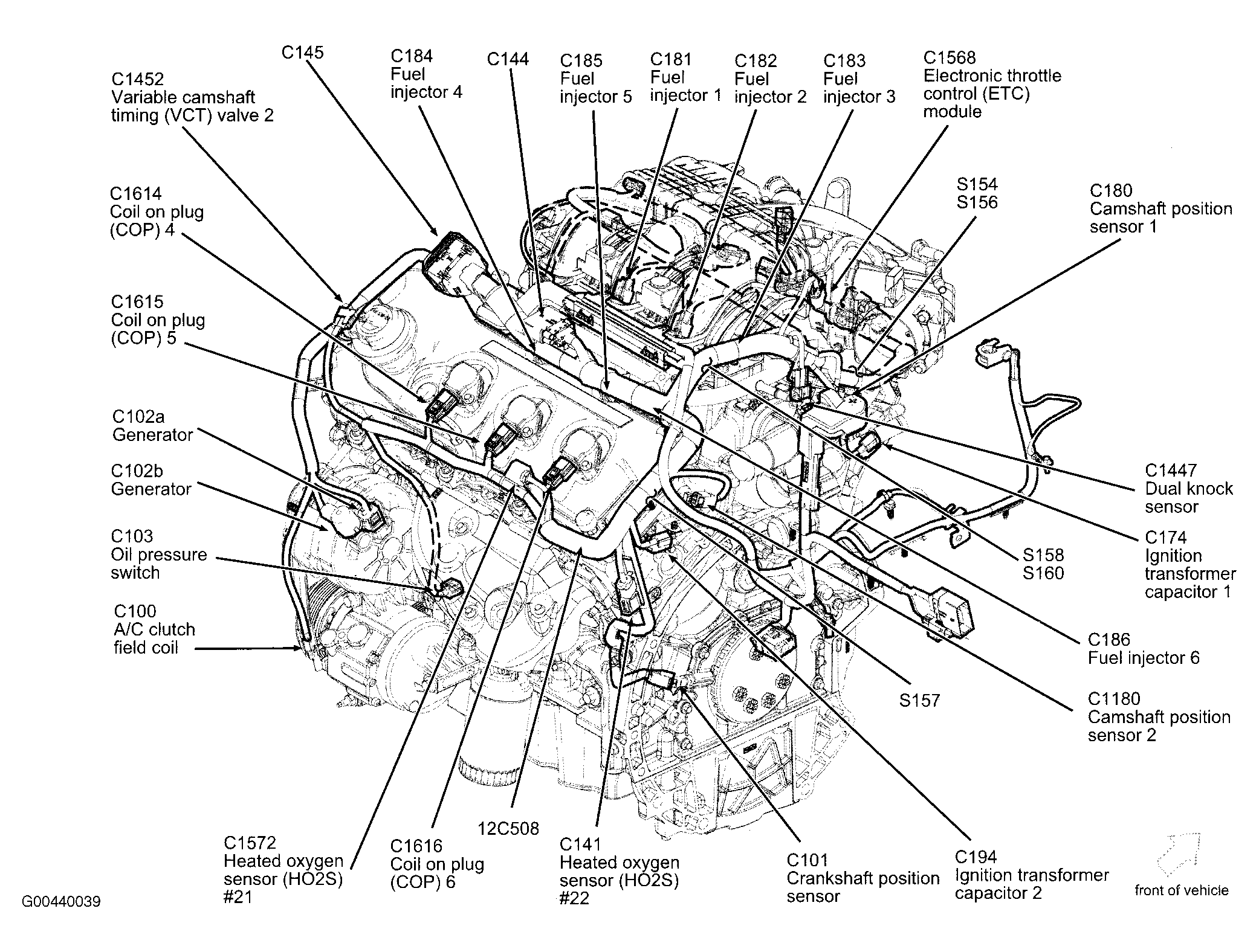 | Electronic Throttle Control (EATC) Module (3.5L) | Right side of engine. See Figure. |