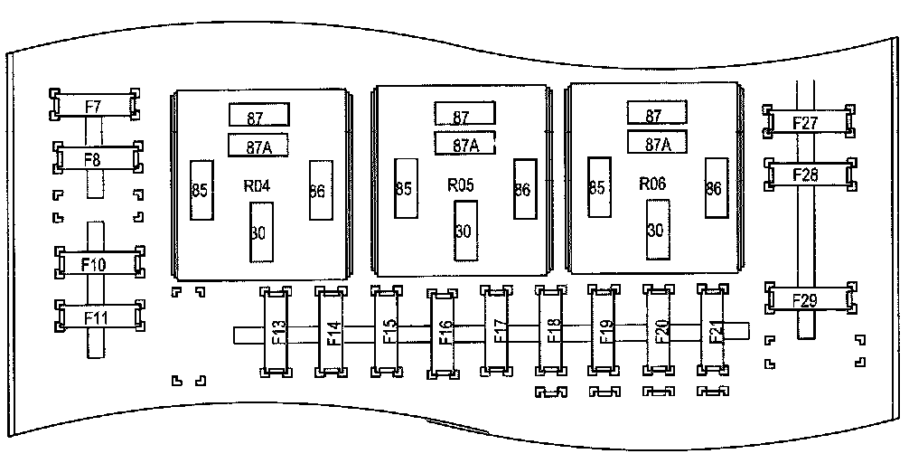 Fuse and Relay Information contains a view of the fuse/relay box in which fuses and relays are identified, numbered and named. Fuse and relay numbering and naming follow the indication of the fuse panel cover. In addition, for all removable relays, pin positions are added to illustrate proper orientation.