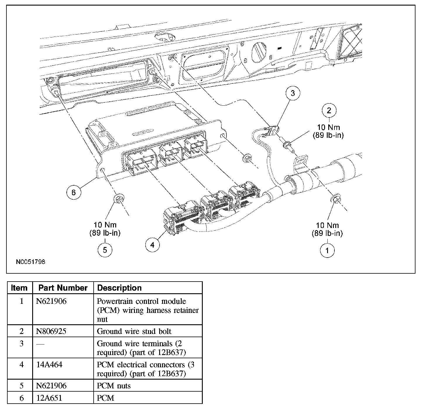 4. Install the PCM wiring harness retainer nut.