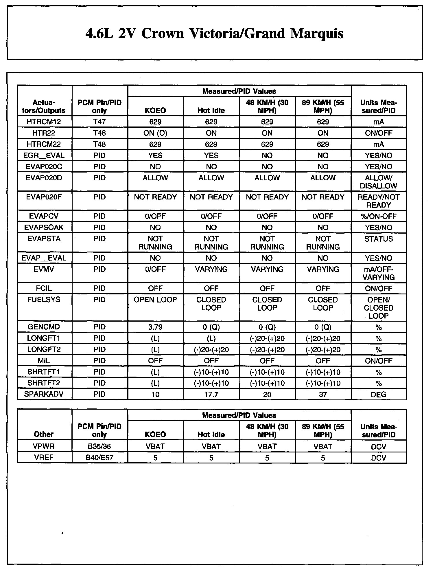 Home >> Ford >> 2008 >> Crown Victoria V8-4.6L >> Repair and Diagnosis >> Powertrain Management >> Computers and Control Systems >> Testing and Inspection >> Scan Tool Testing and Procedures >> Typical Diagnostic Reference Values