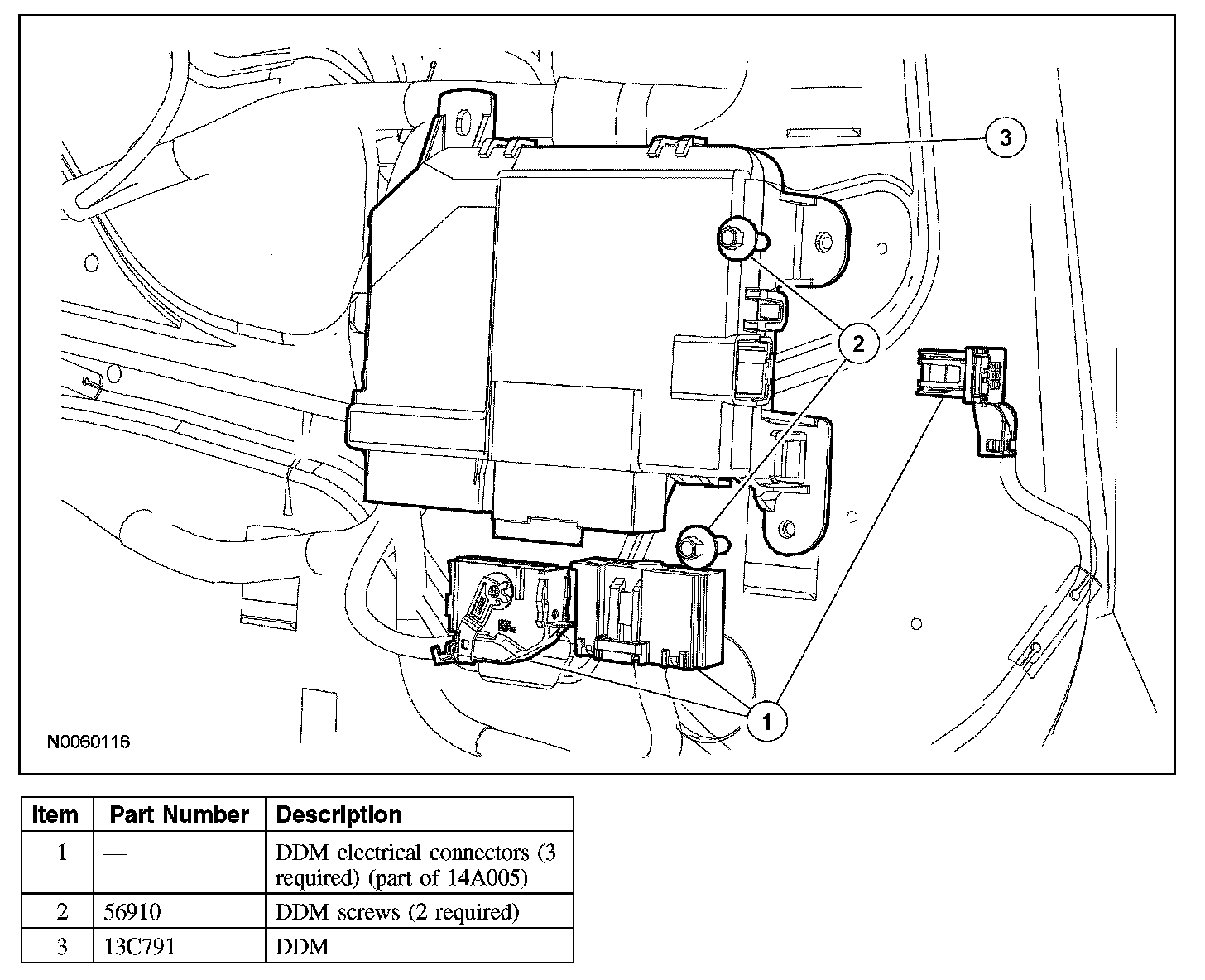 3. Disconnect the 3 DDM electrical connectors.
