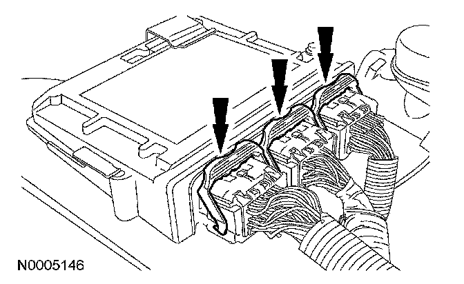 2. Release the clips and disconnect the 3 PCM electrical connectors.