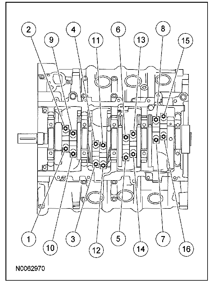 Crankshaft Main Bearing Cap Side Bolts 21 Nm (15 lb-ft).