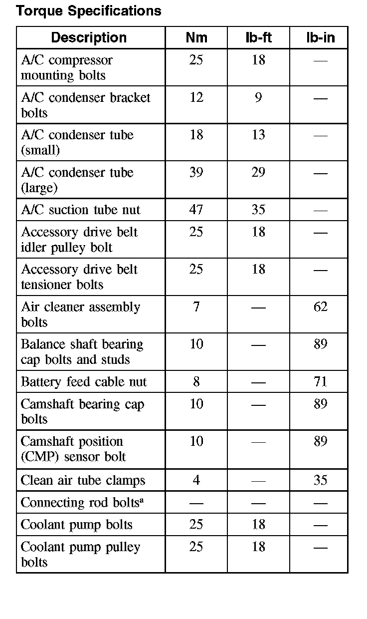 Torque SpecificationsCylinder Head Bolts
