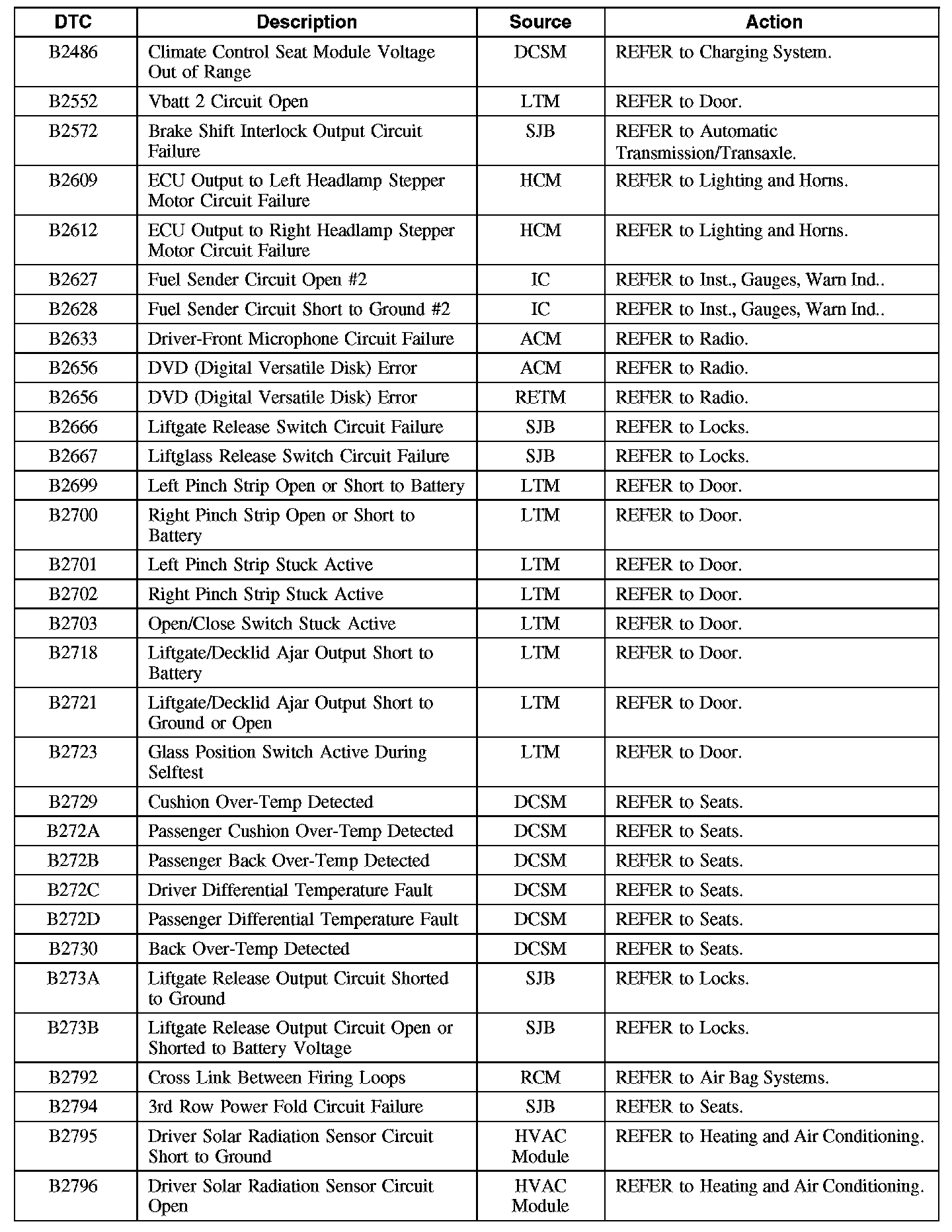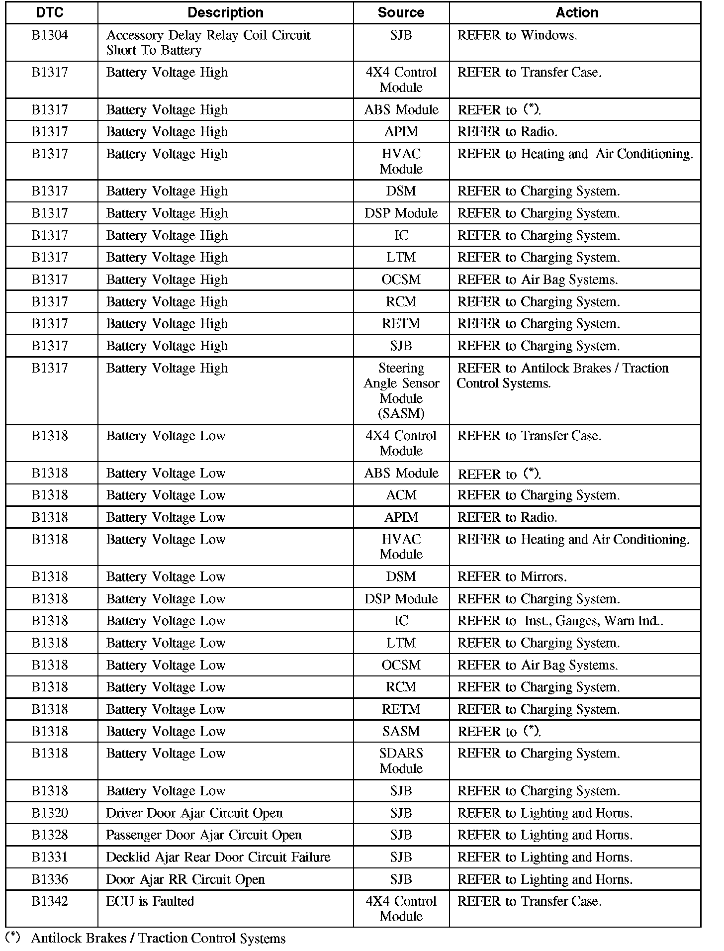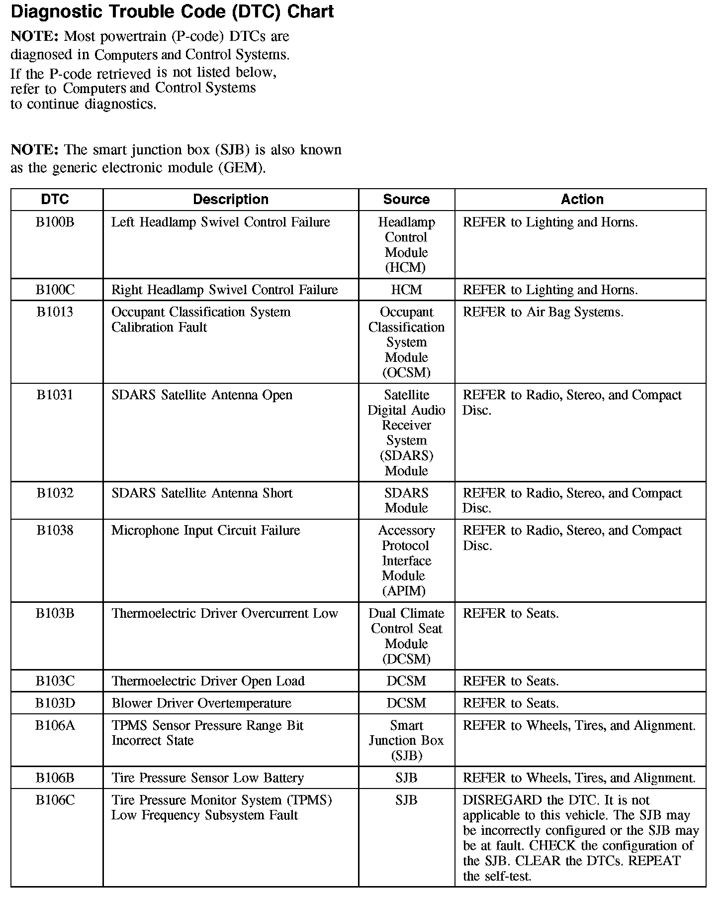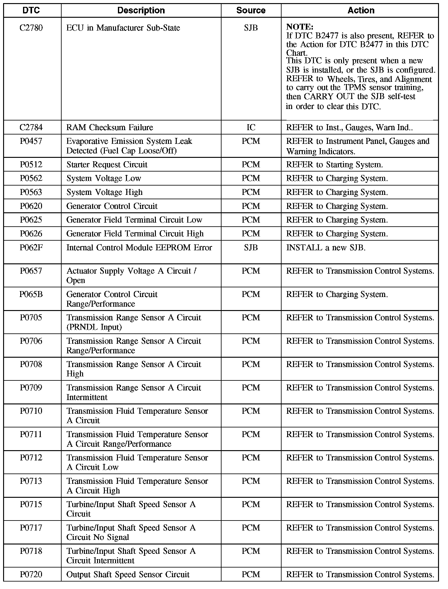 Diagnostic Trouble Code (DTC) Chart