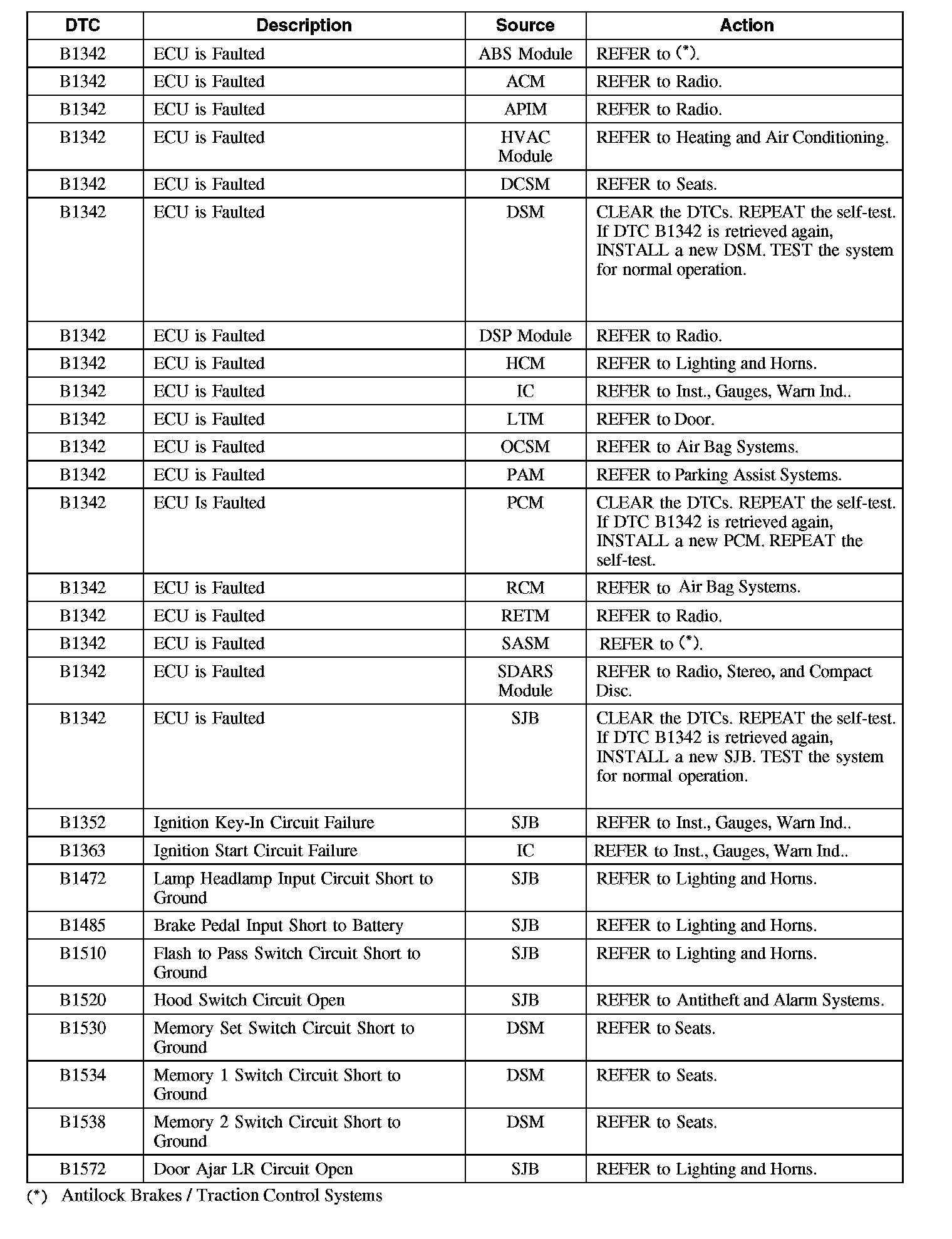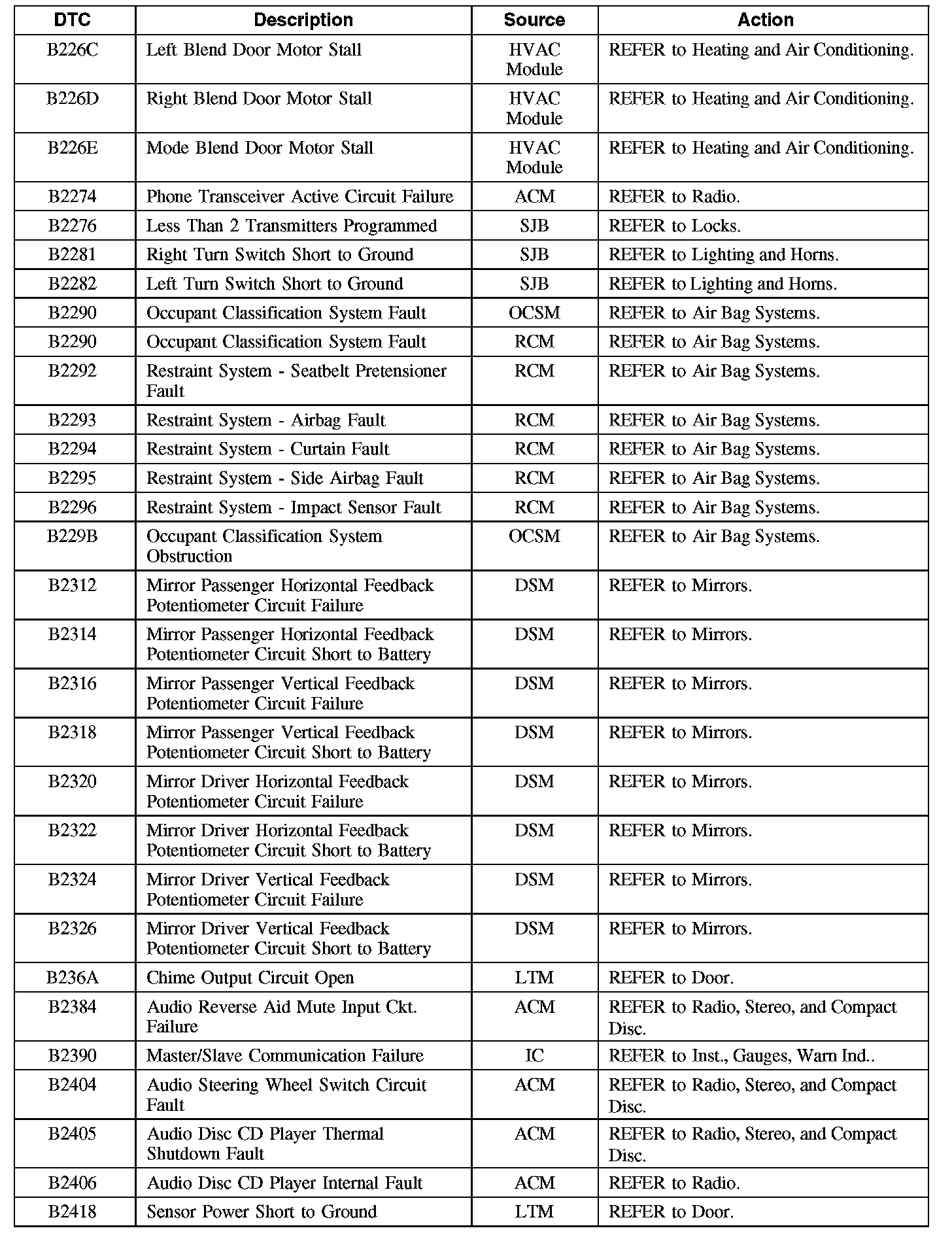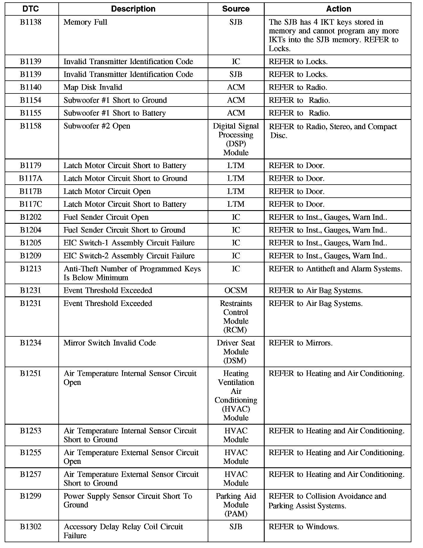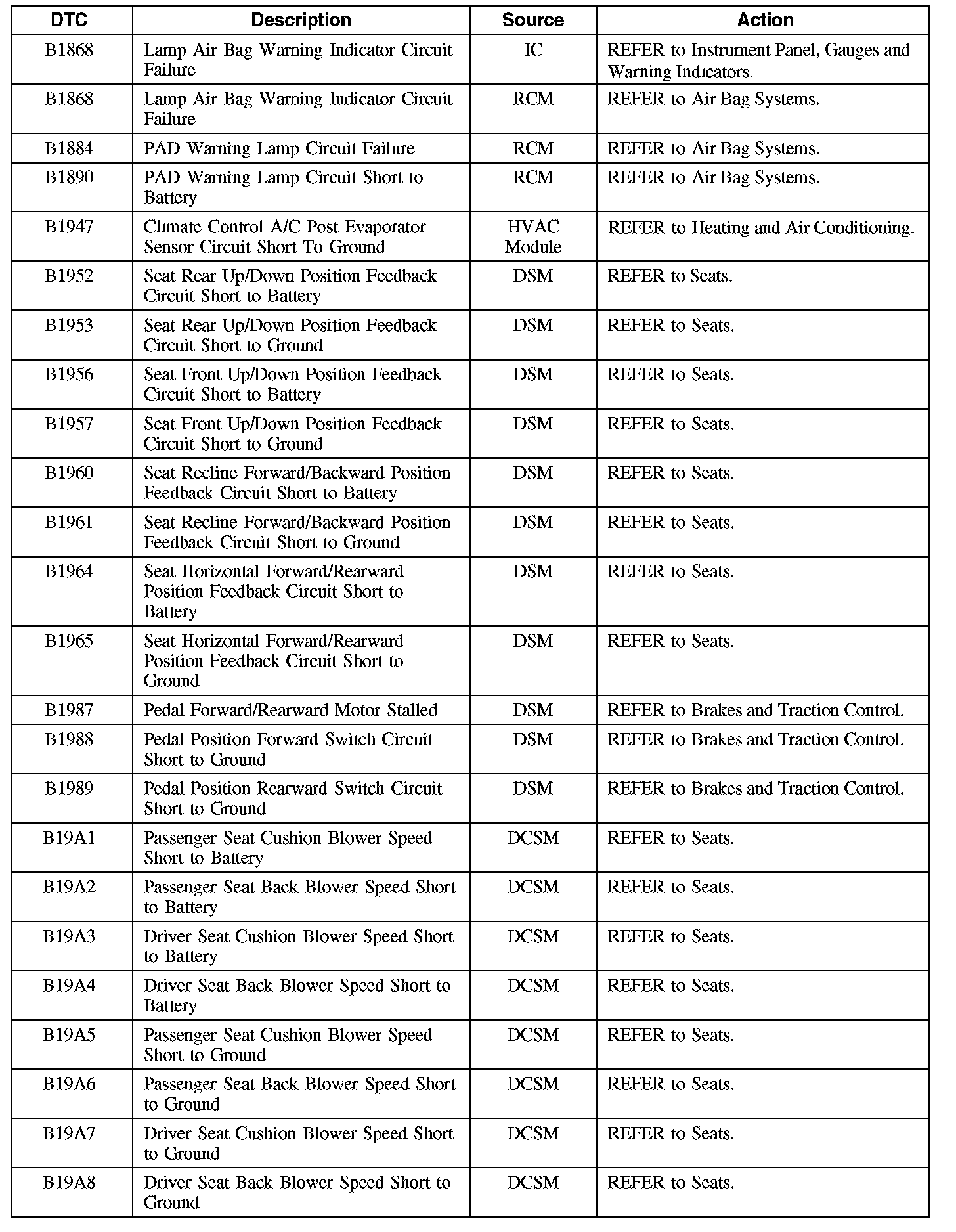 Diagnostic Trouble Code (DTC) Chart