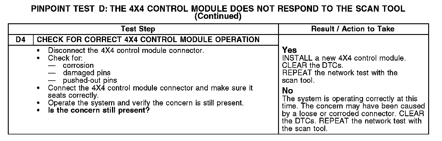 PINPOINT TEST D: THE 4X4 CONTROL MODULE DOES NOT RESPOND TO THE SCAN TOOLNormal Operation