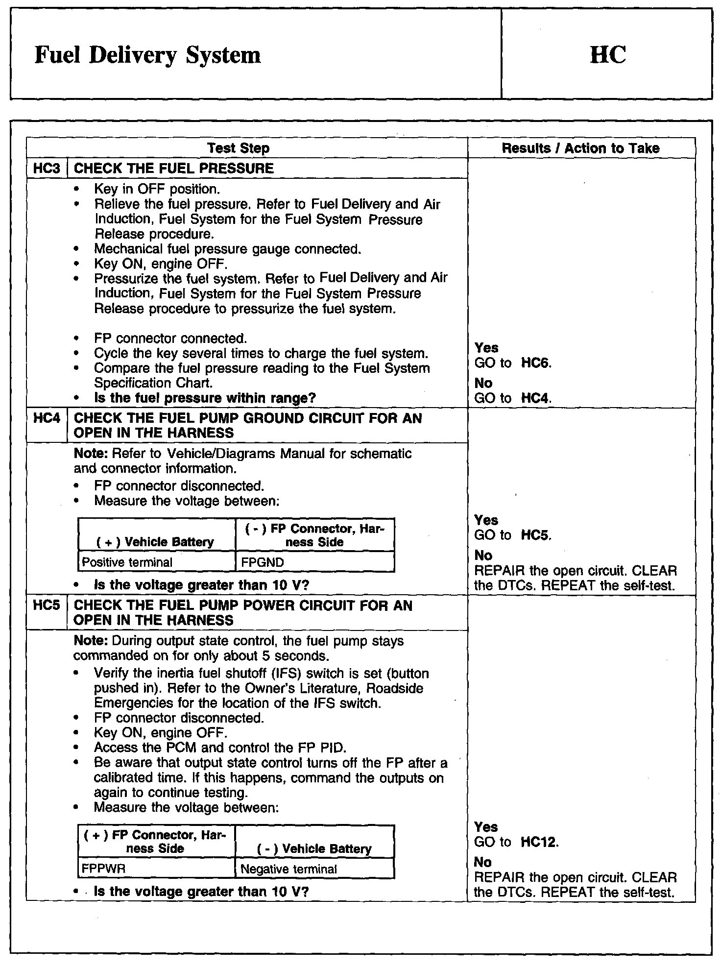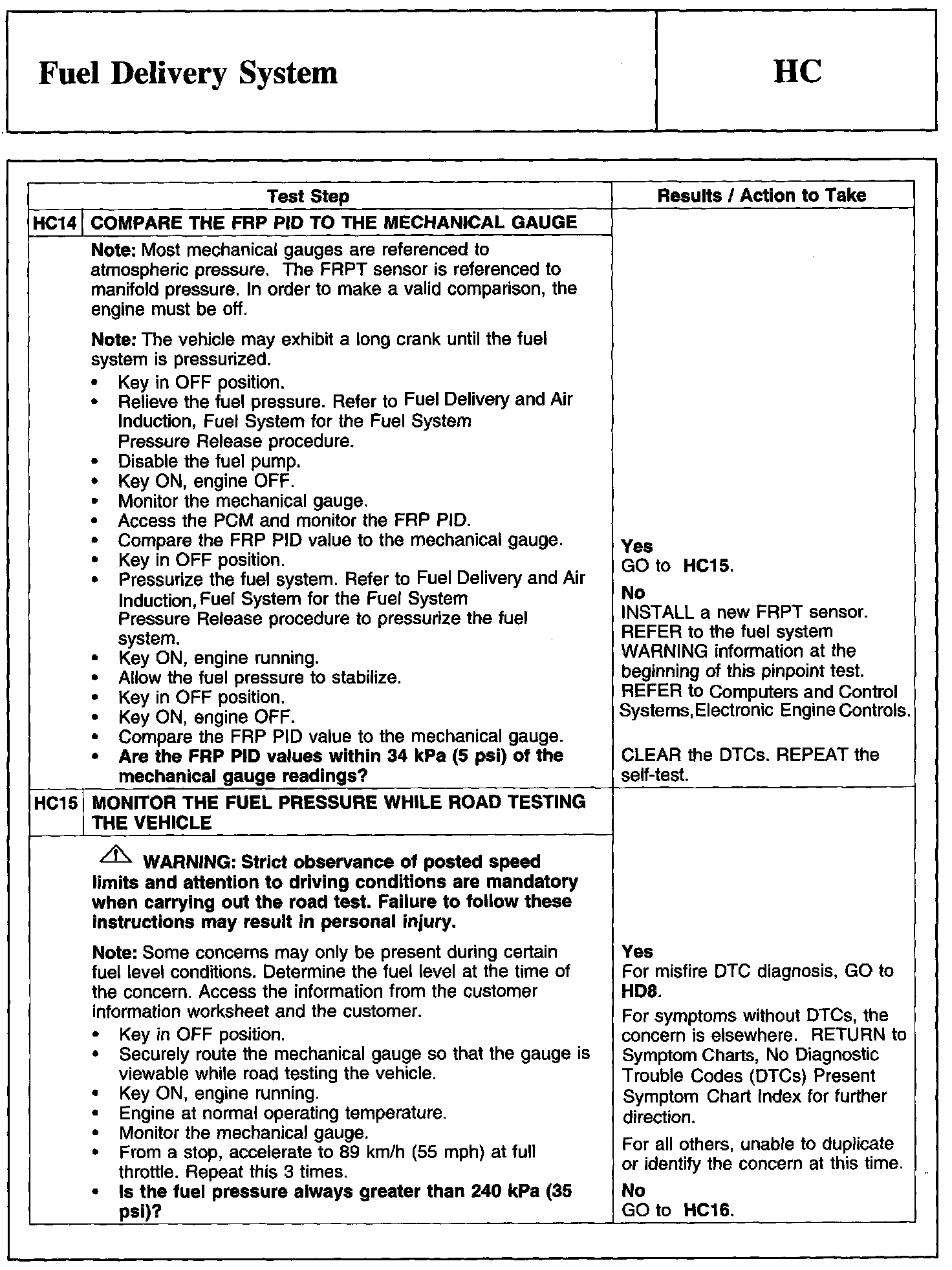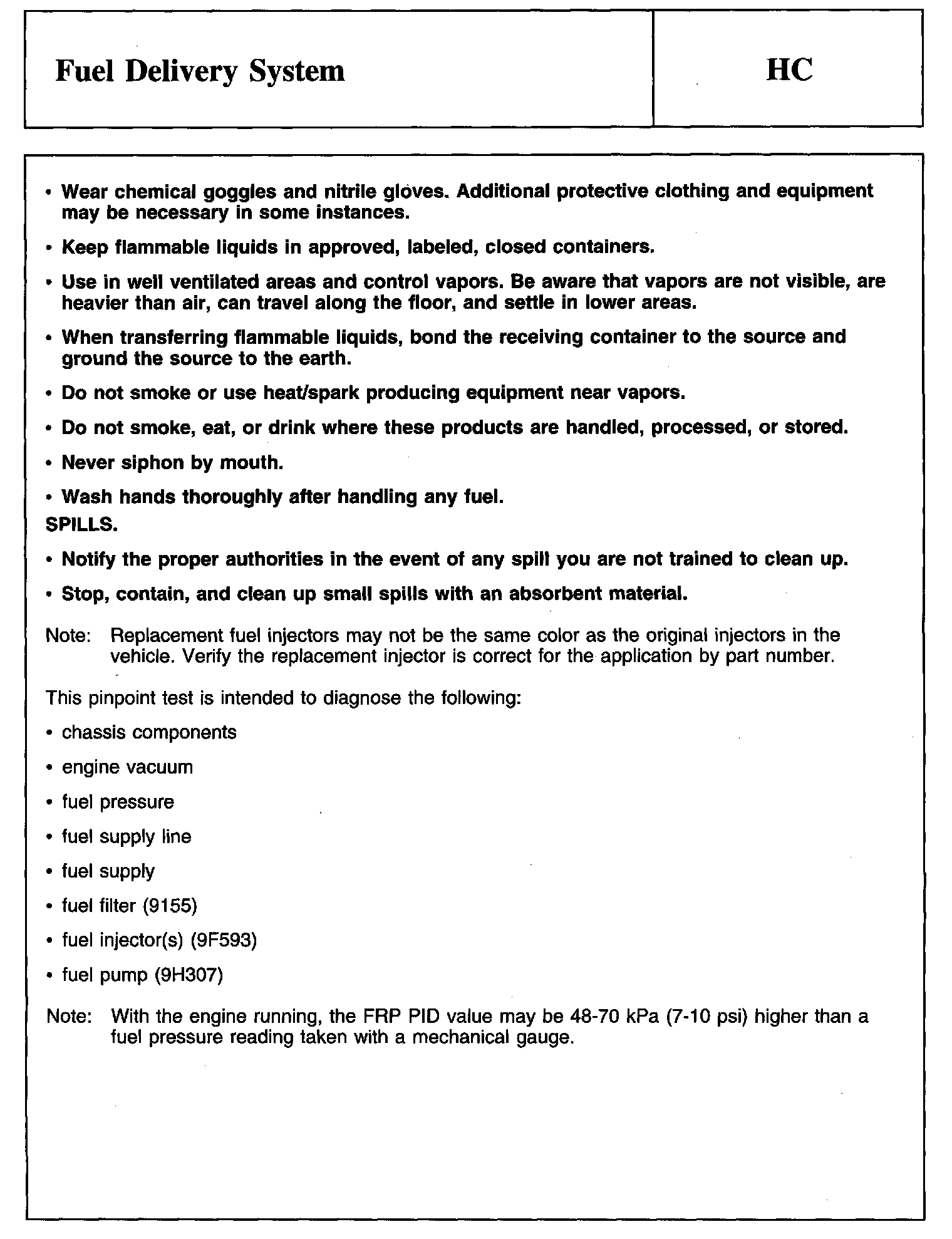 PINPOINT TEST HC: FUEL DELIVERY SYSTEMWarnings: