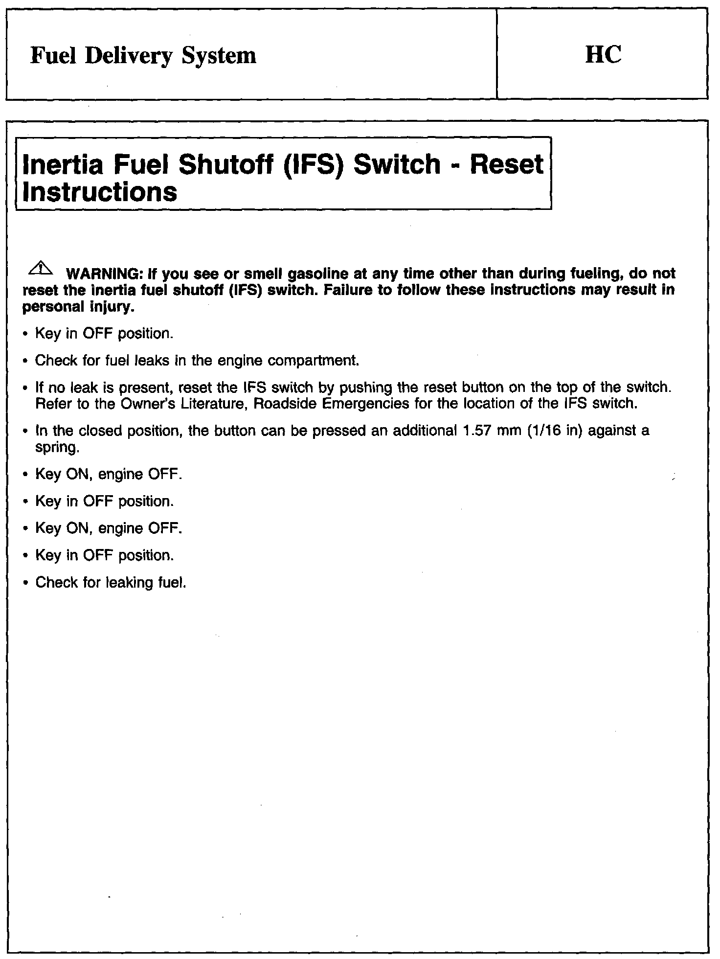 Inertia Fuel Shutoff (IFS) Switch - Reset Instructions: