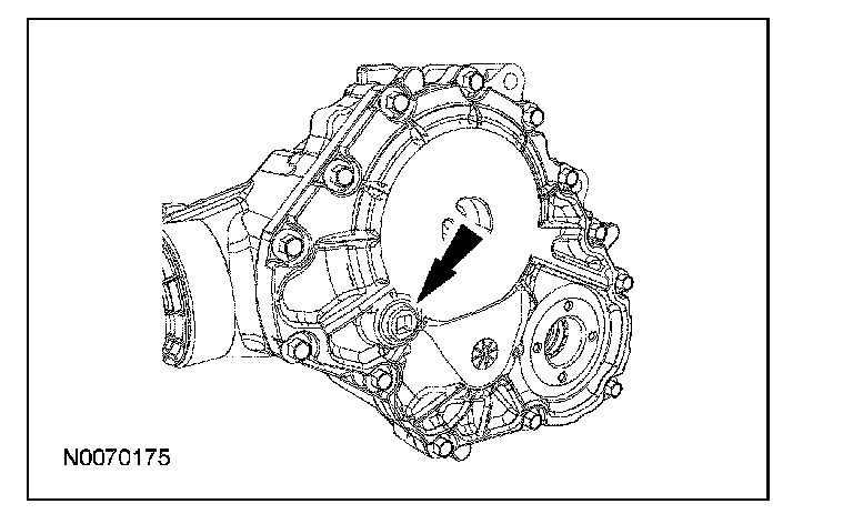 4. With the vehicle on a flat level surface, fill the PTU with lubricant. The fluid must be even with the bottom of the fill opening.