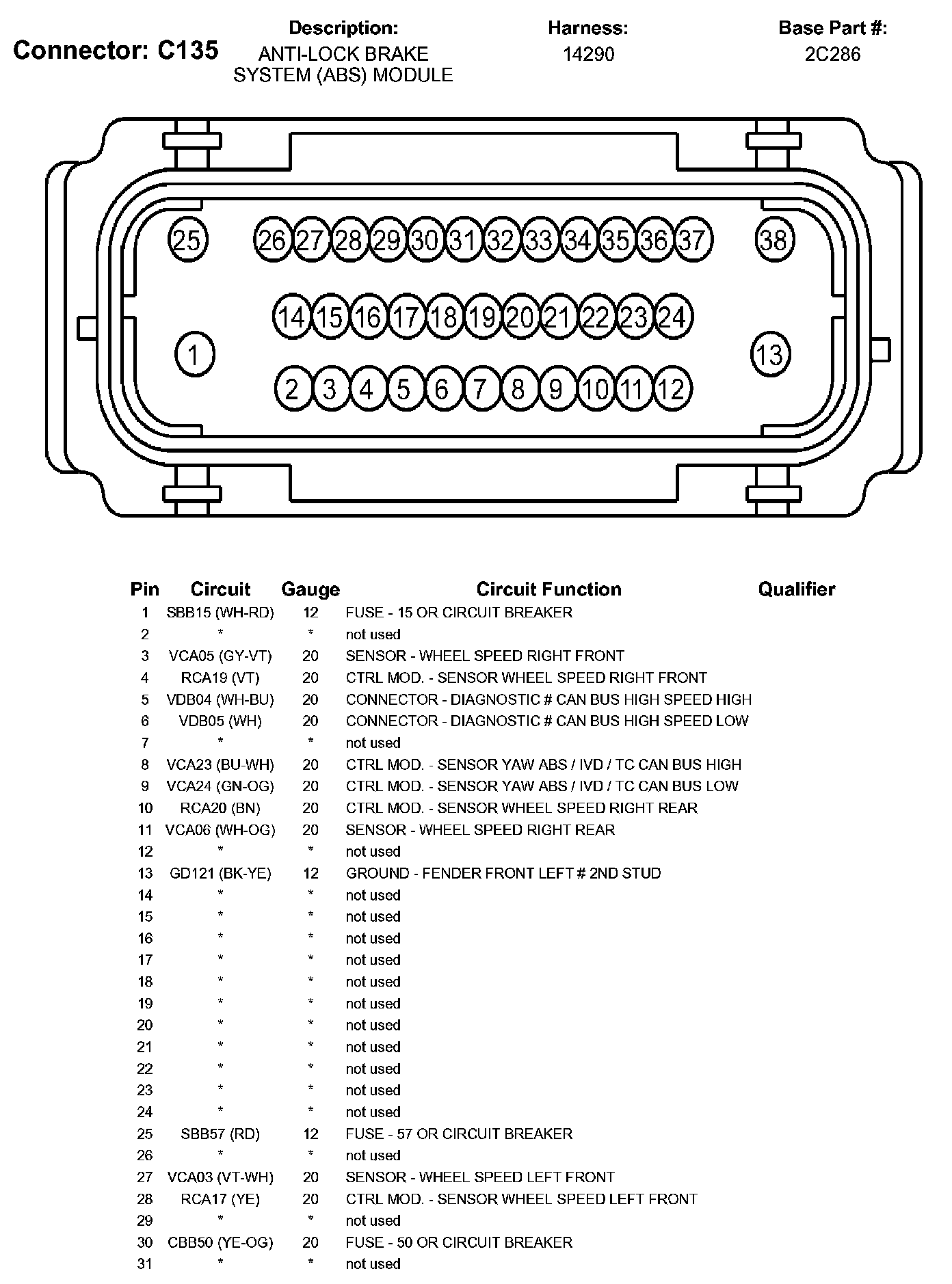 Home >> Ford >> 2008 >> Edge FWD V6-3.5L >> Repair and Diagnosis >> Diagrams >> Connector Views >> Electronic Brake Control Module