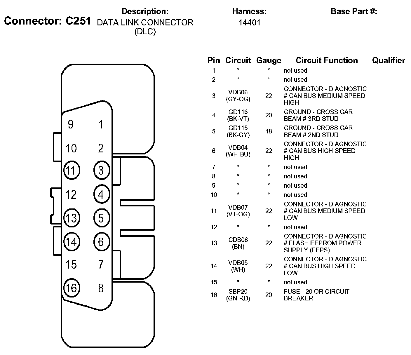 Data Link Connector: Diagrams